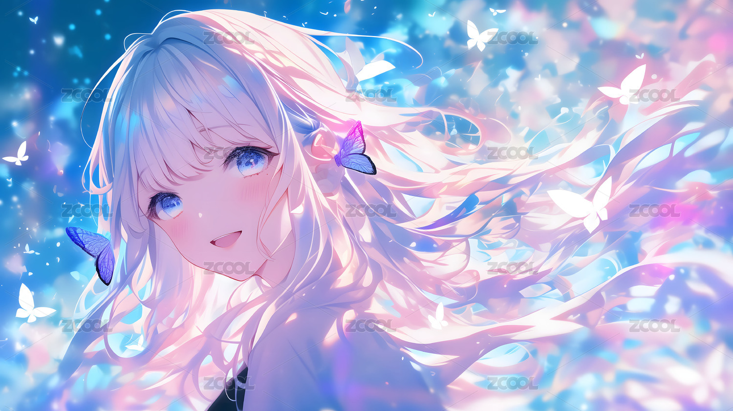 女孩,人像,二次元,少女,柔美,可爱,蝴蝶,温柔