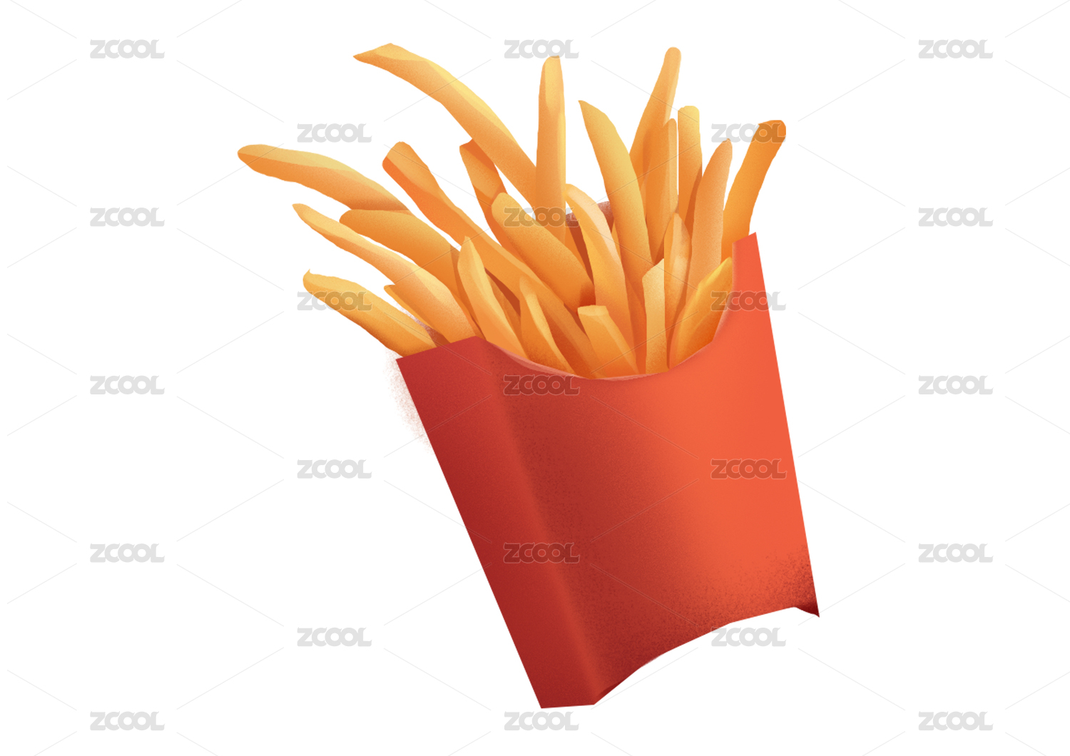手绘矢量薯条卡通快餐食物盒装免抠素材