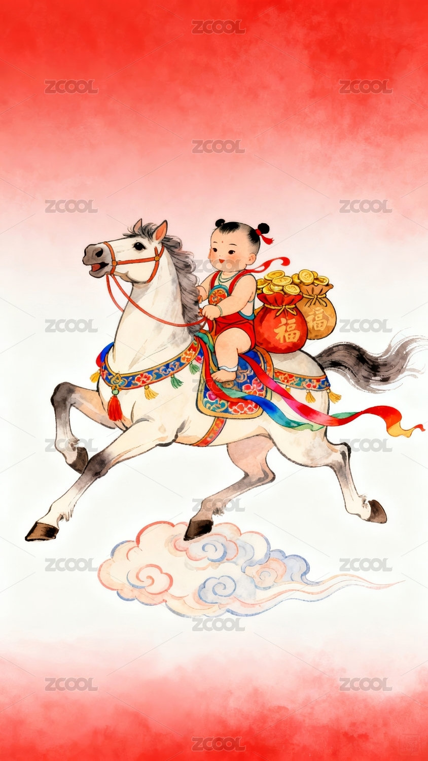 生肖马喜庆风春节贺岁场景