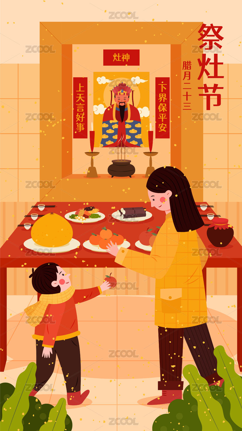 春节新年过年腊月二十三祭灶节拜灶神矢量