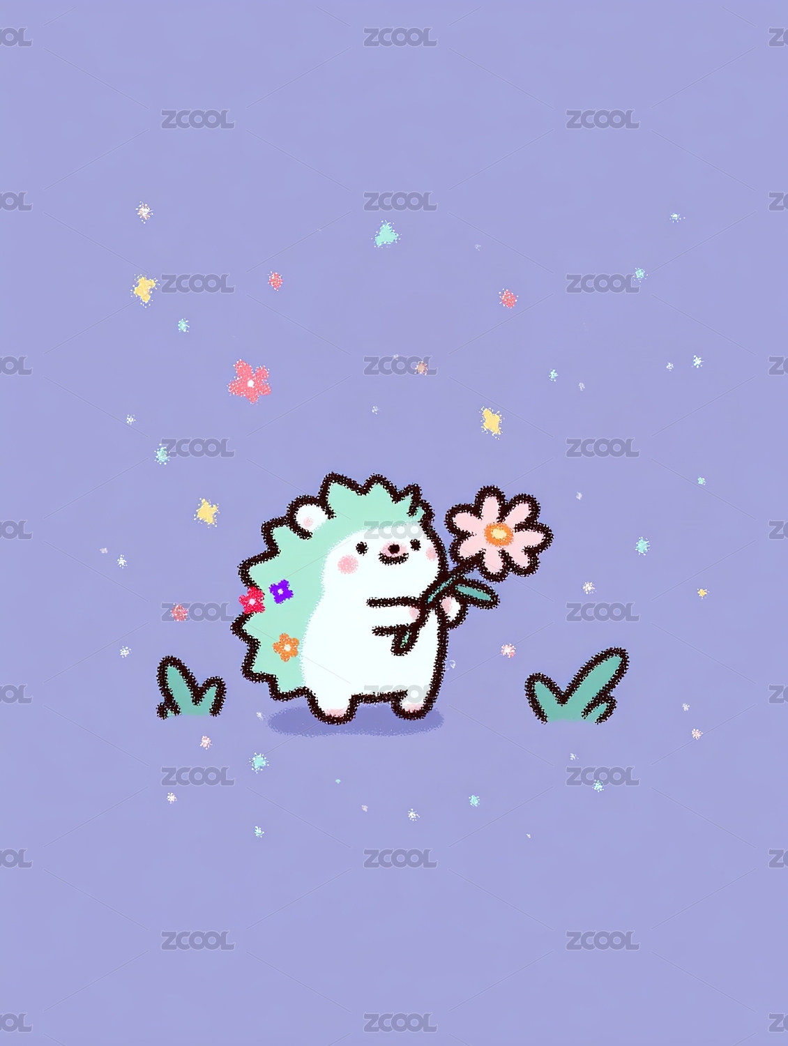卡通可爱拿着花的刺猬