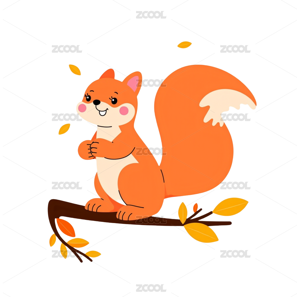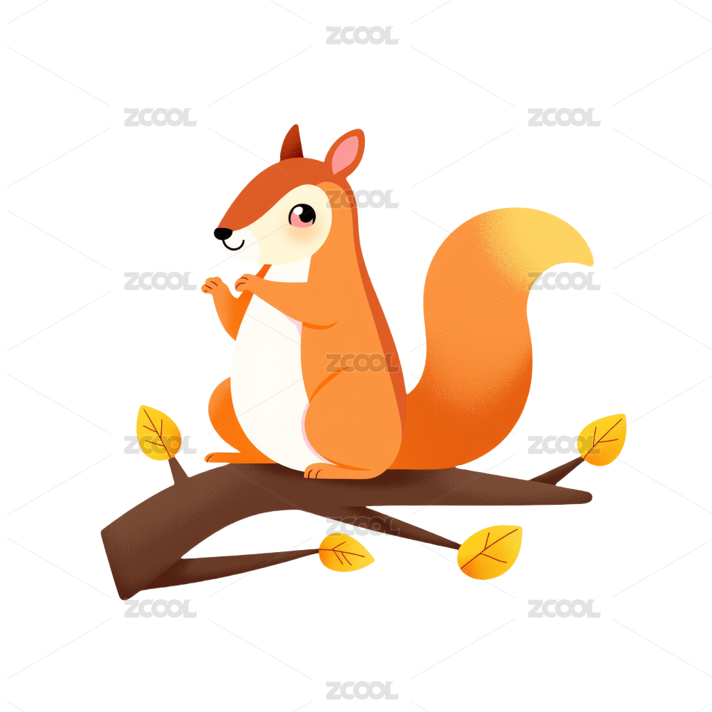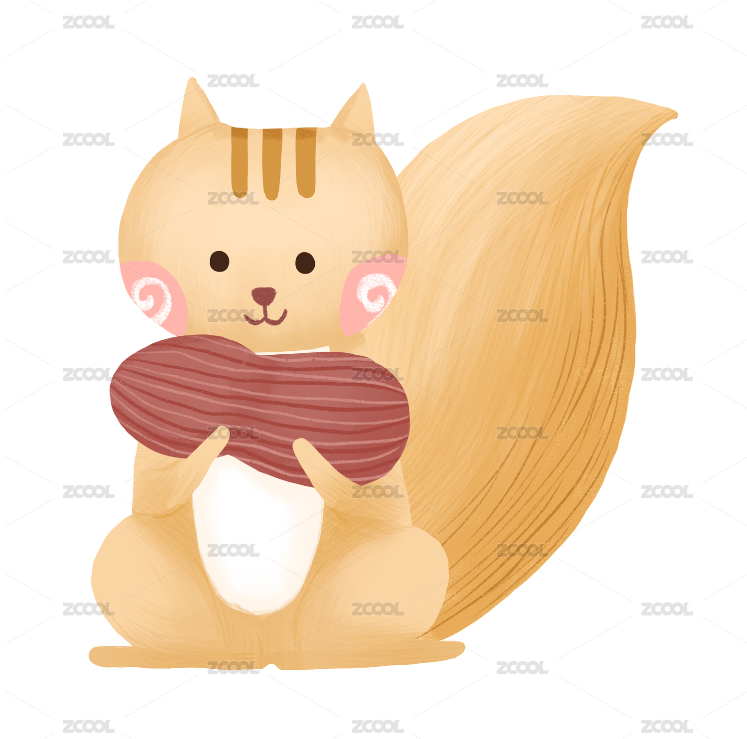 松鼠,松果,蹲着,卡通,动物,可爱,儿童,橙色,插画