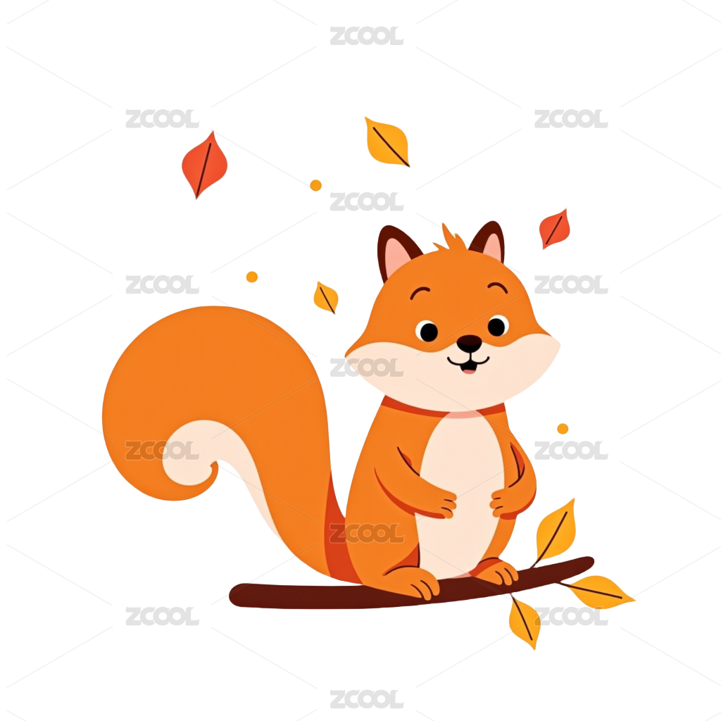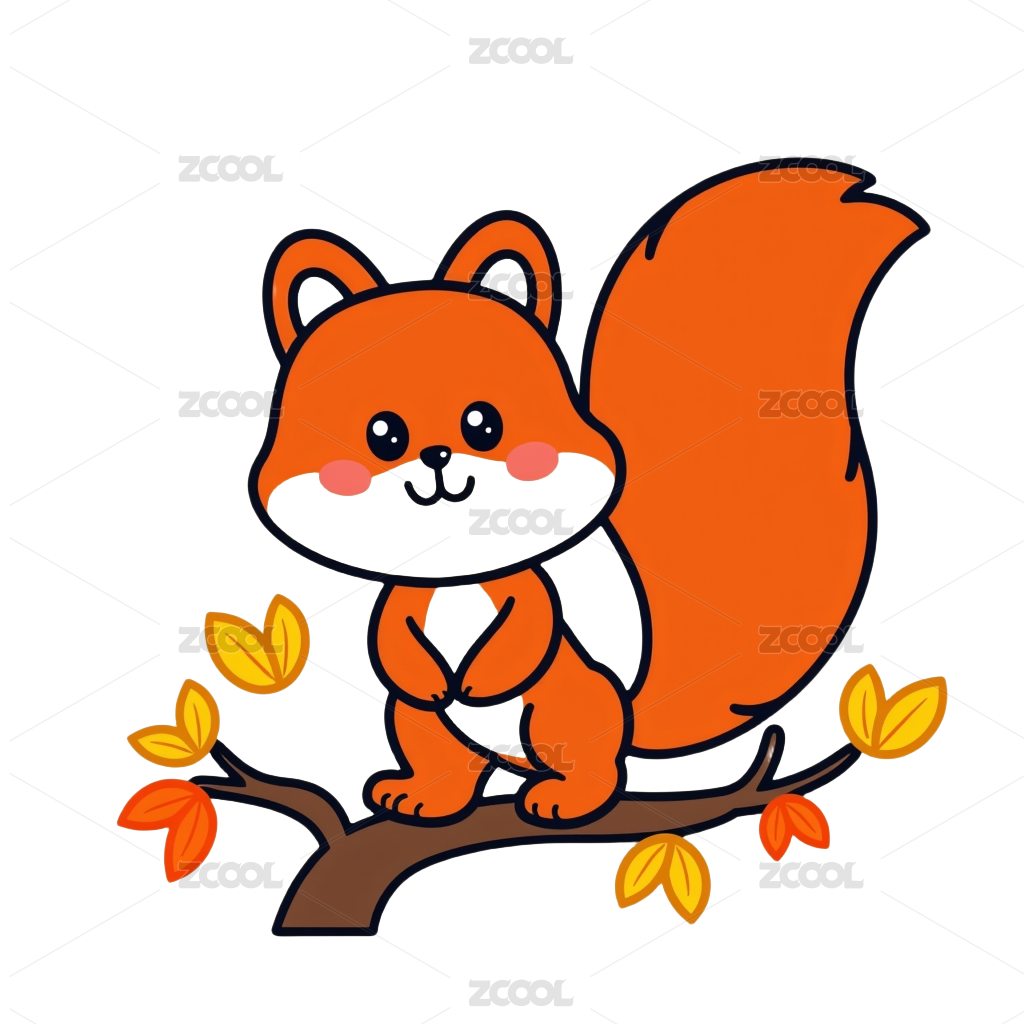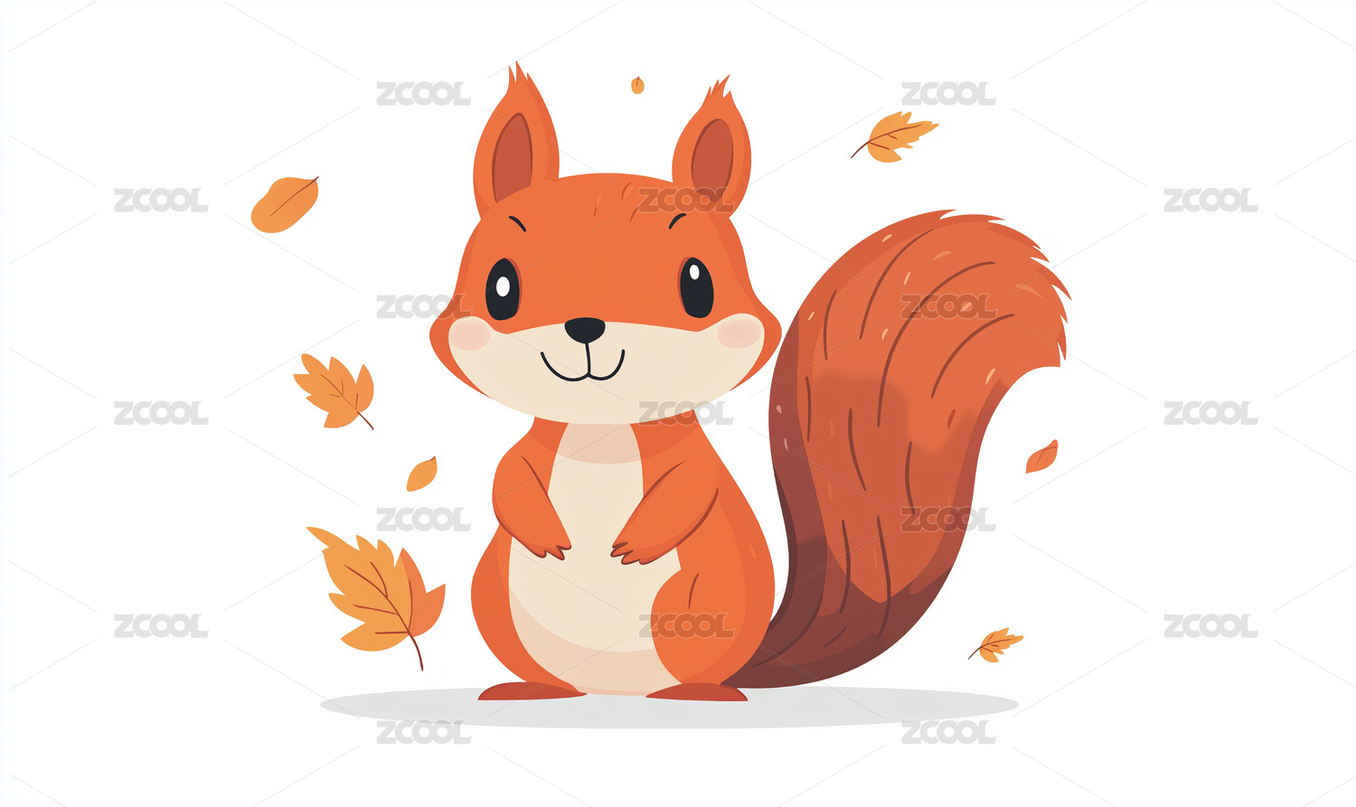 松鼠,松果,蹲着,卡通,动物,可爱,儿童,橙色,插画