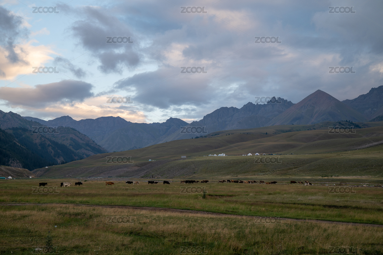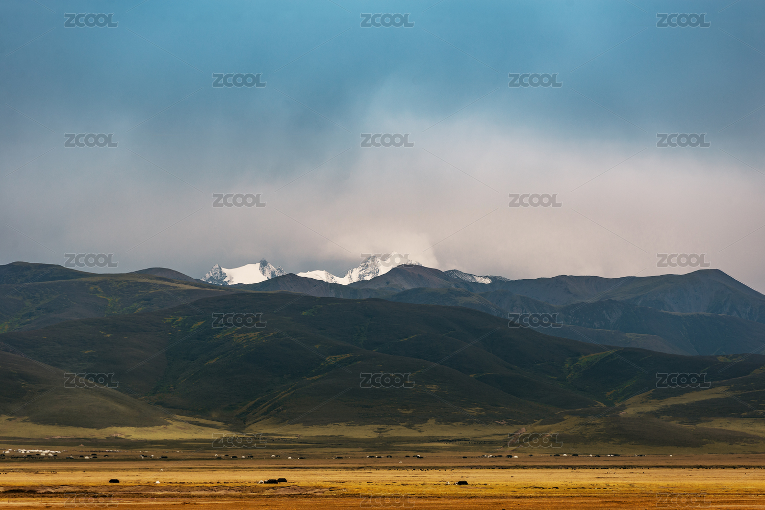 中国新疆琼库什台秋季草原雪山日落自然风光