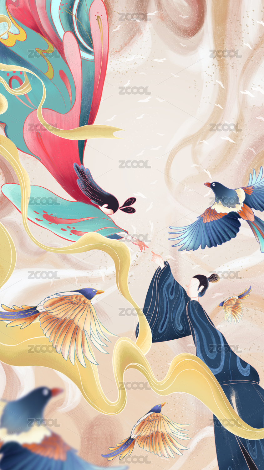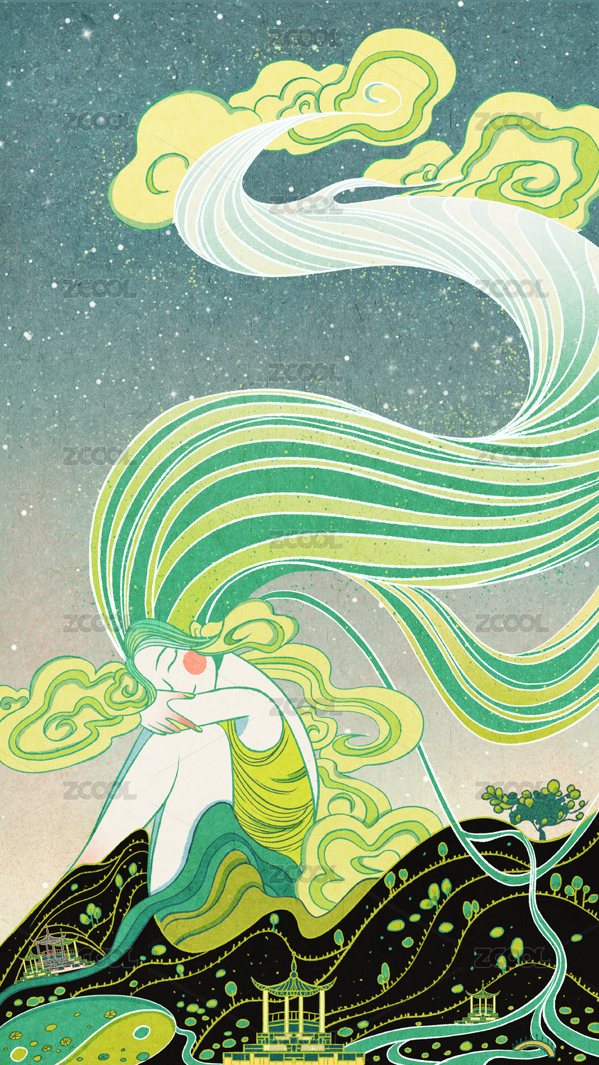 神话,哈密,女娲,插画,传说,自然,异域,绘画,天空,艺术