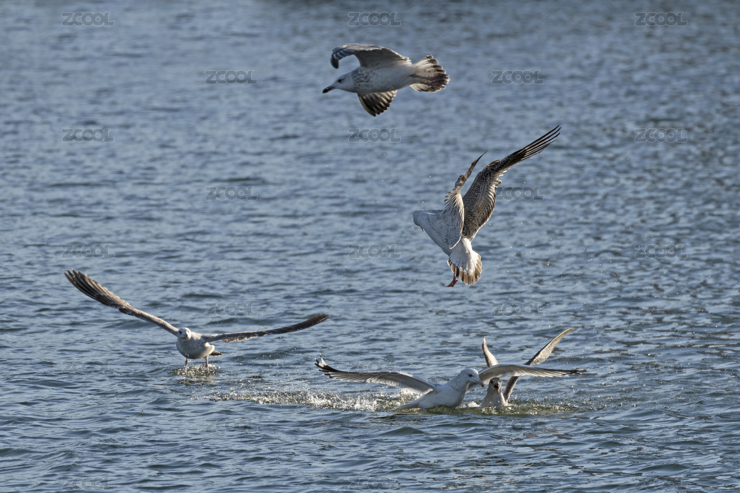海鸥在海面上自由飞翔追逐觅食嬉戏特写
