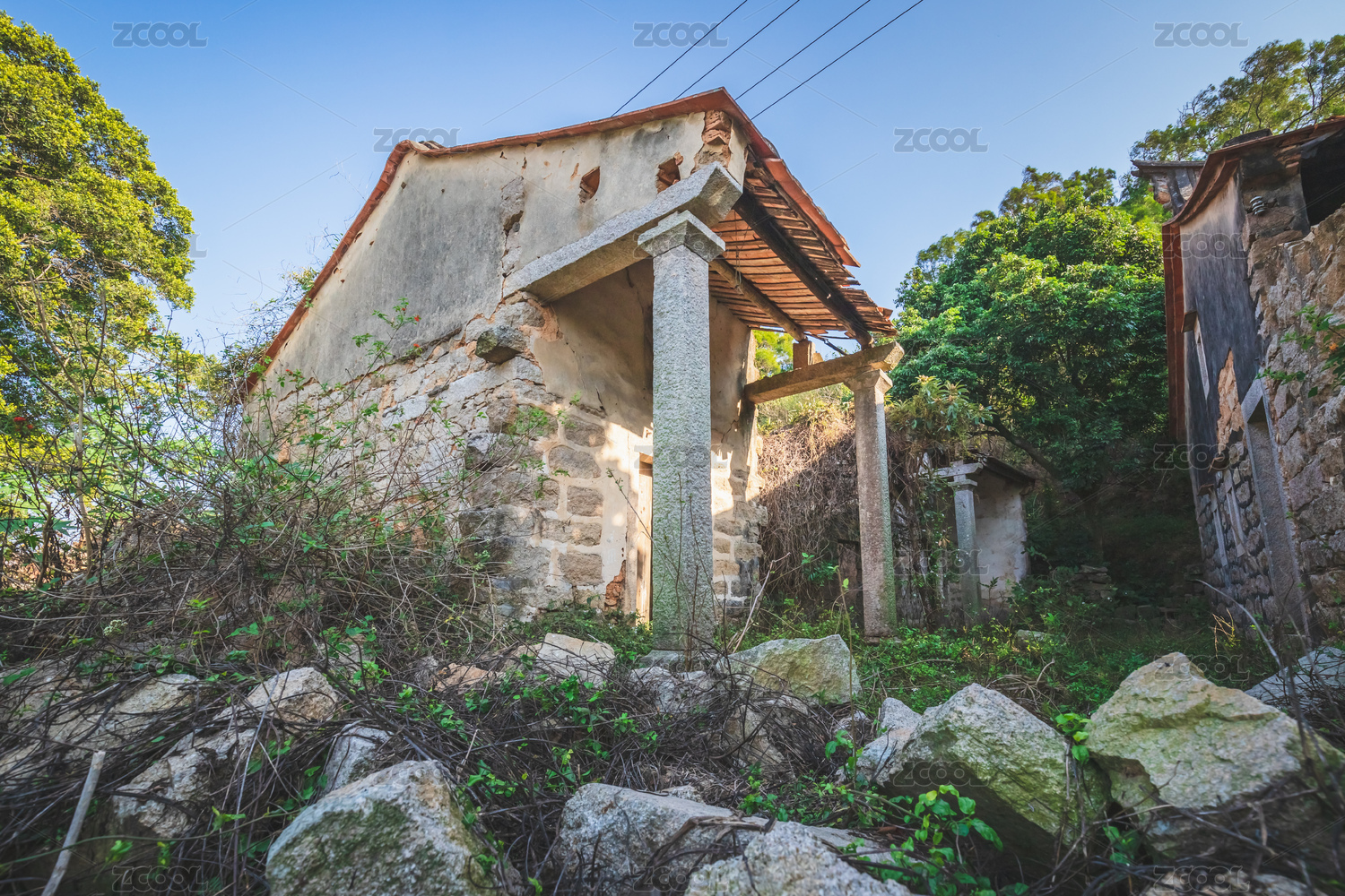粤港澳大湾区文化遗产古村爬满绿植的夯土墙