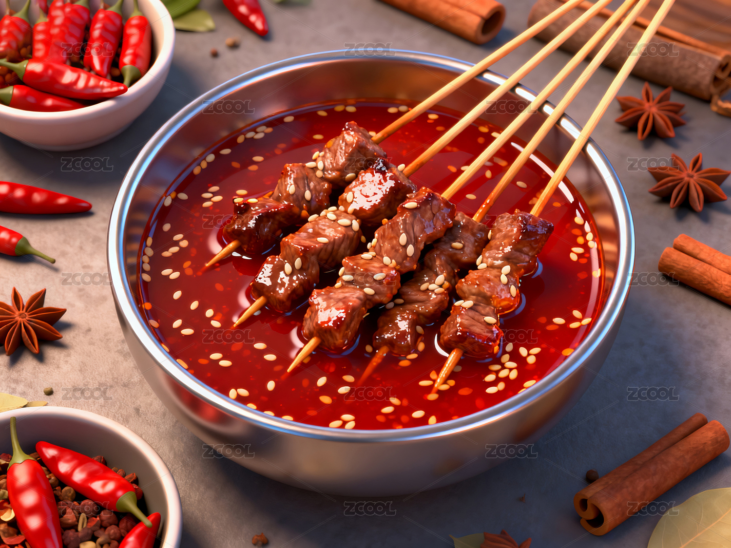 四川一把竹签涮串麻辣小排骨鸡排骨