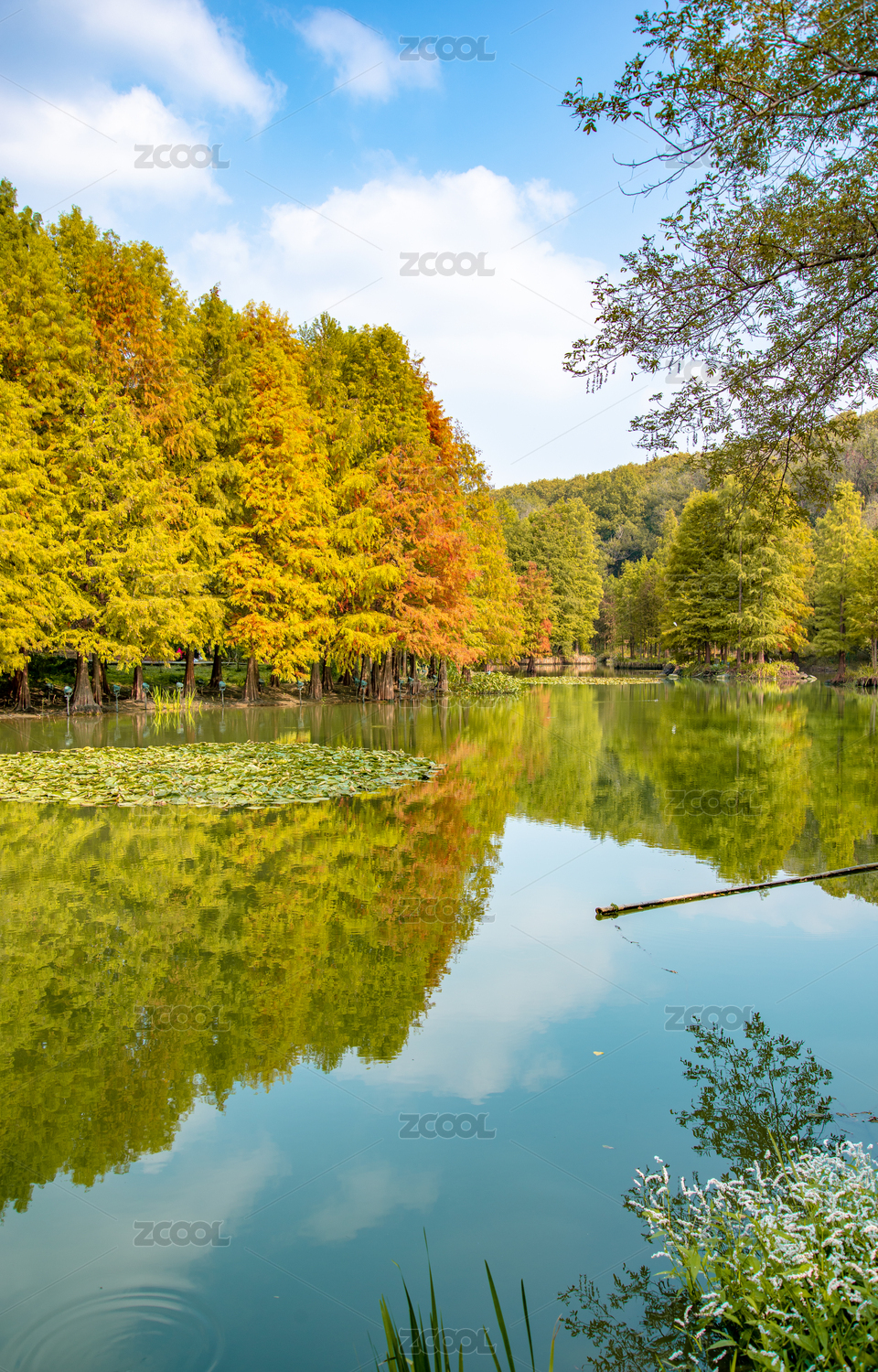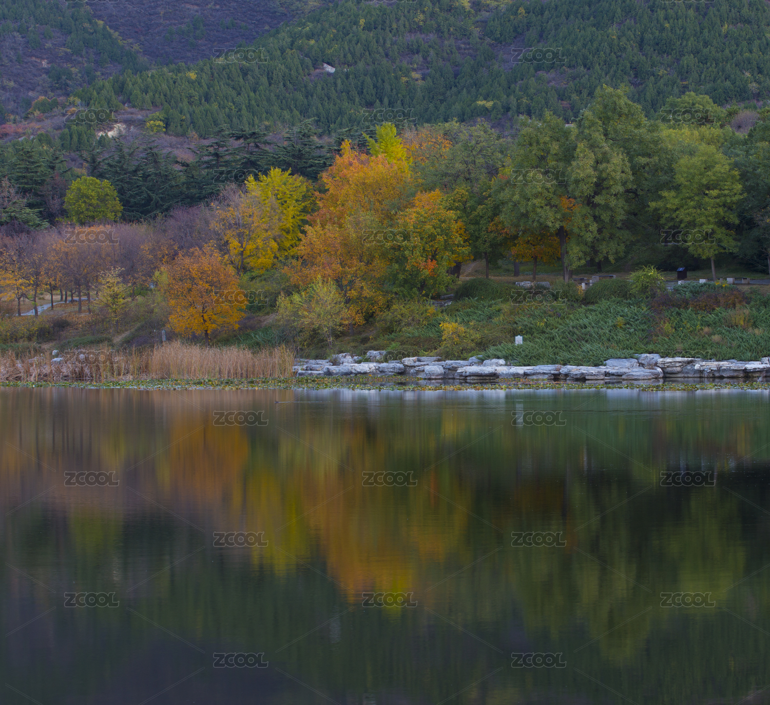 江苏南京灵山风景区前湖秋天秋色倒影