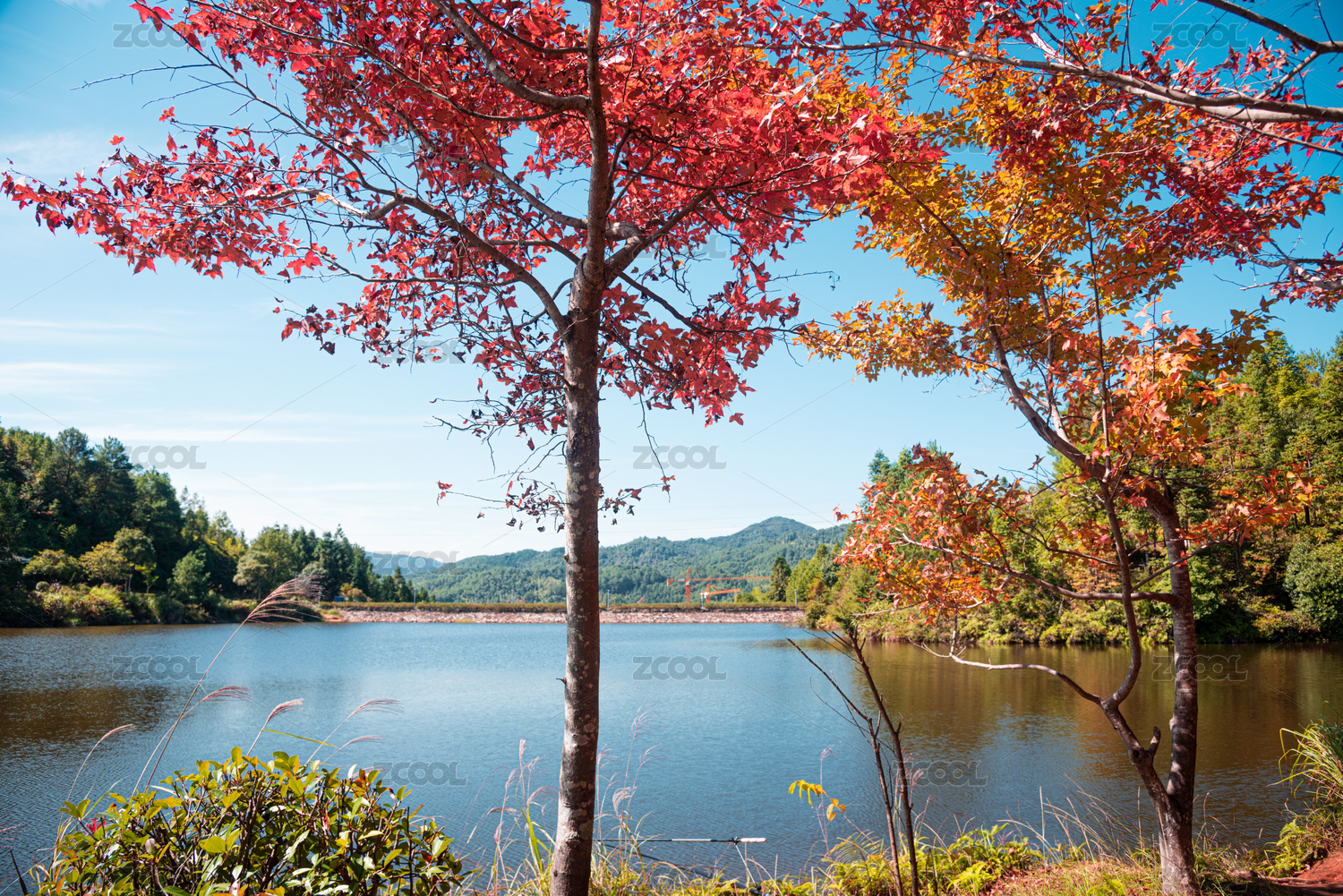 蓝天,秋天,秋季,植株,户外,福建,上杭,古田,山庄,五龙湖