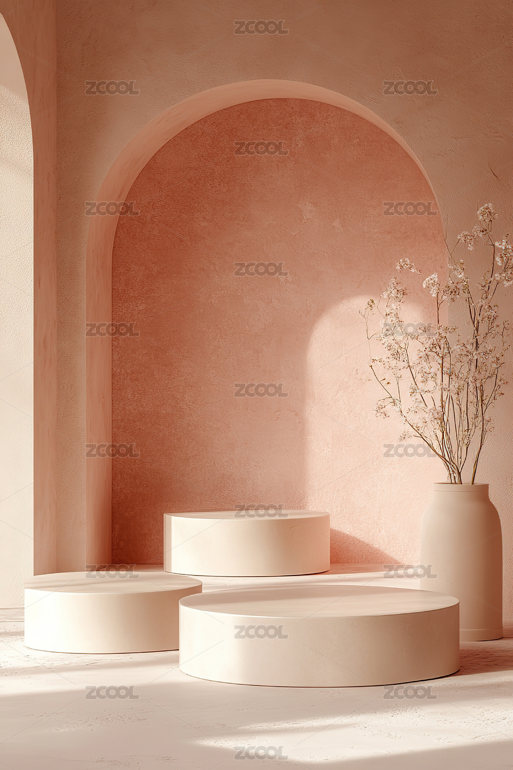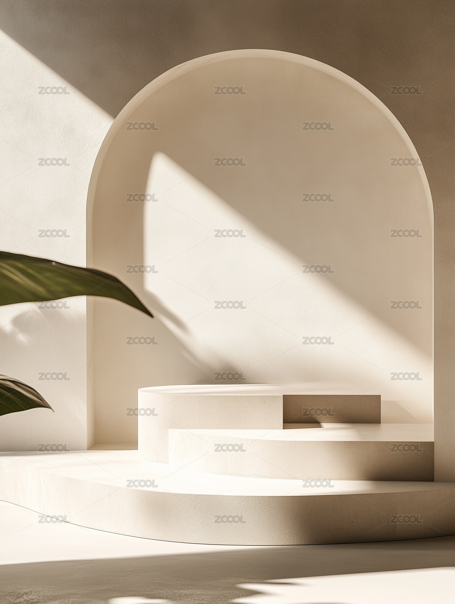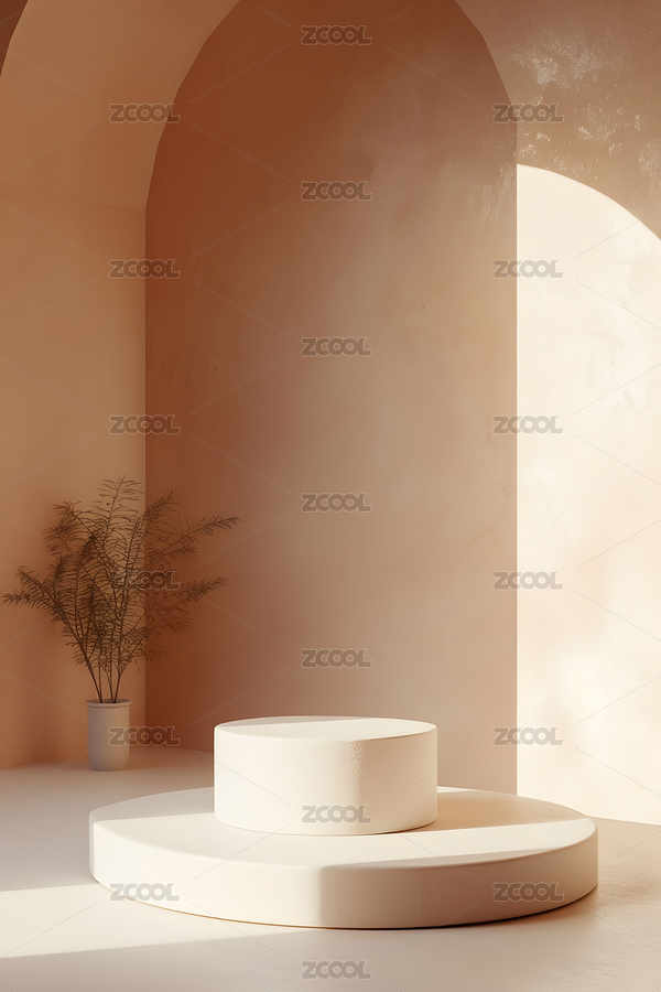 产品展示,背景,简约,风格,光影,绿植,搭配,柔和,光线,静谧