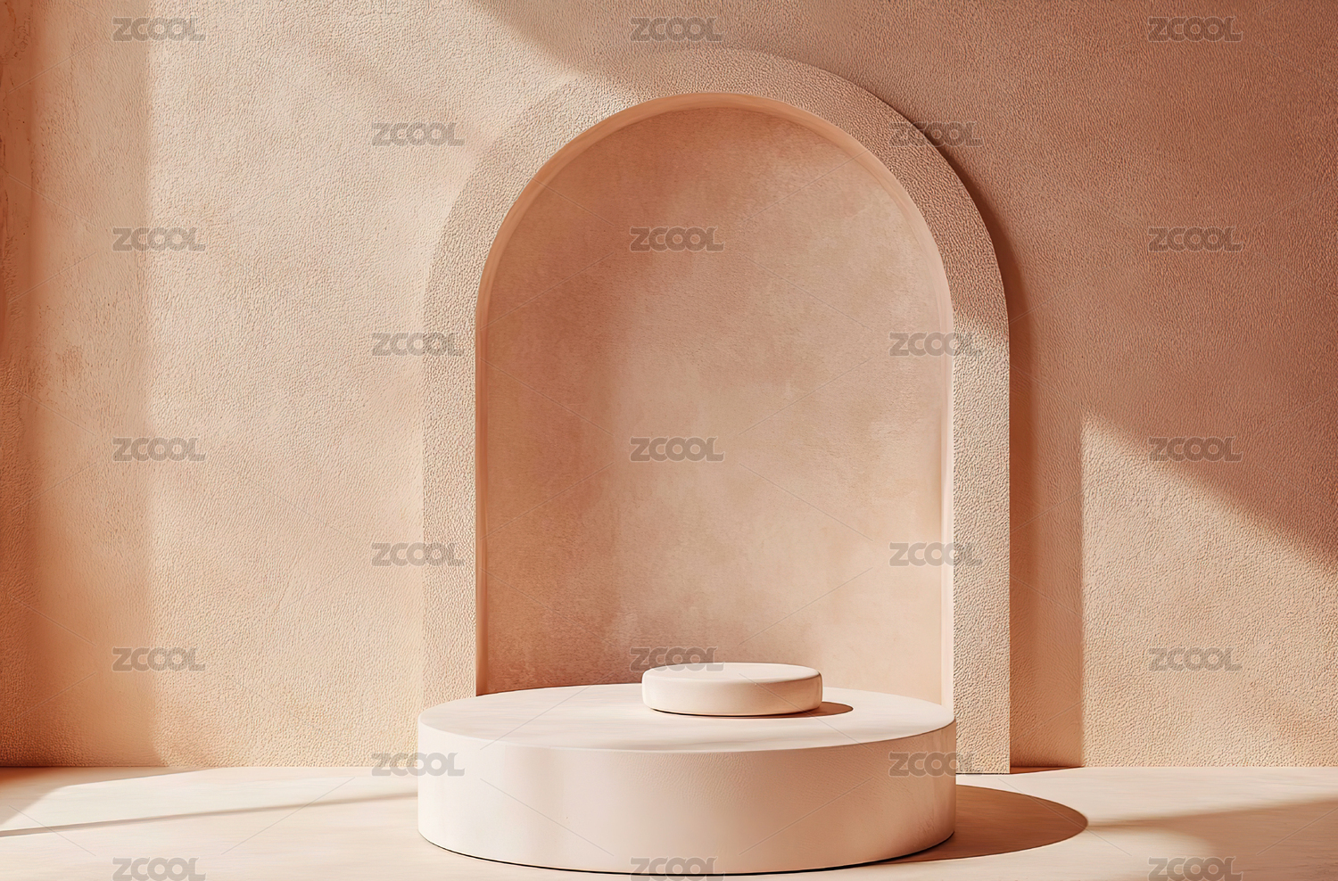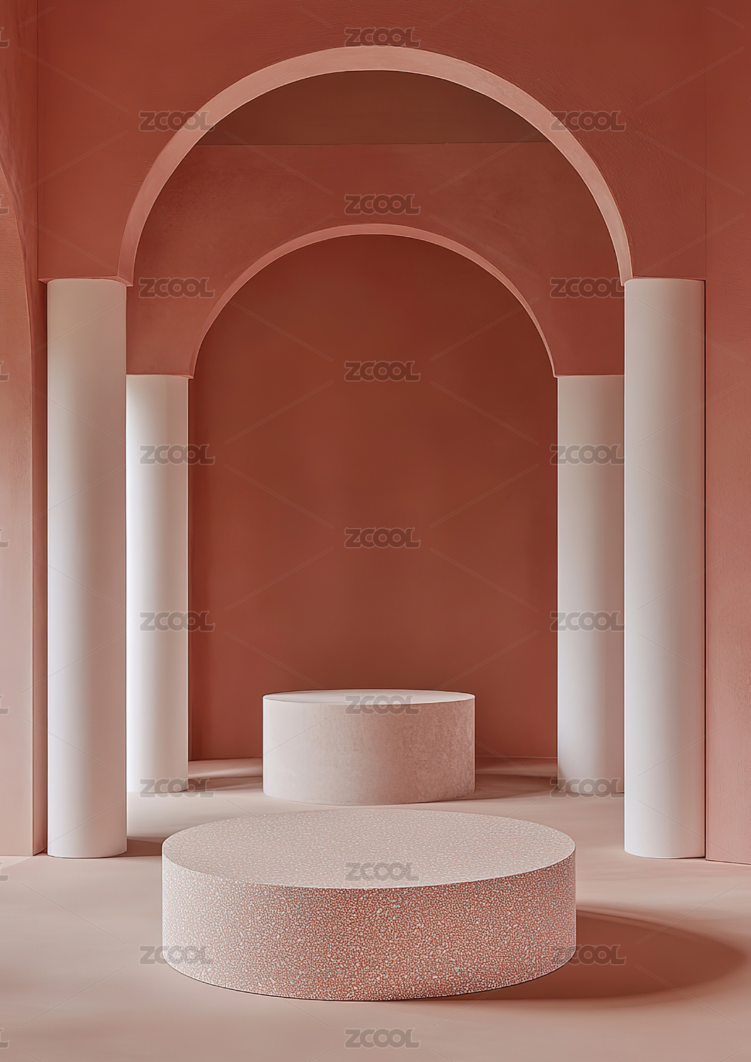 简约拱门内双圆柱体的光影展示
