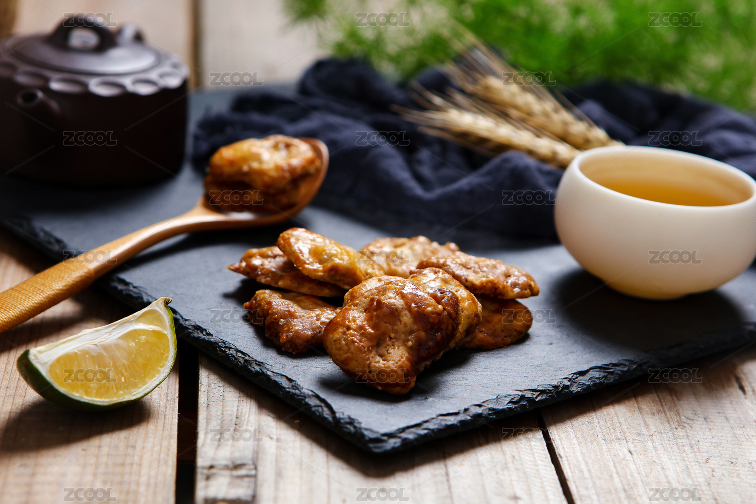 木板桌面上的鸡仔饼