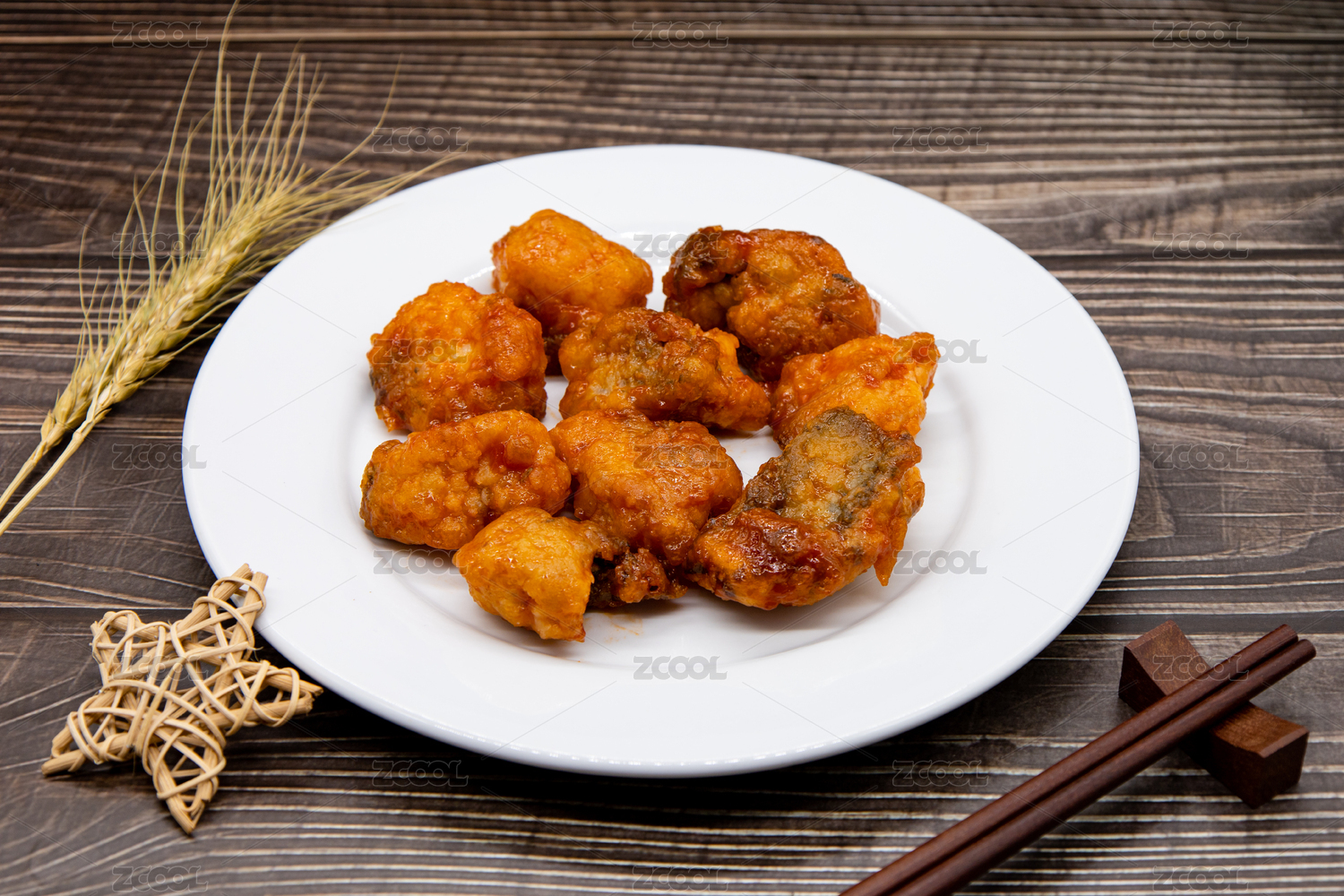 木桌背景一盘糖醋鱼块