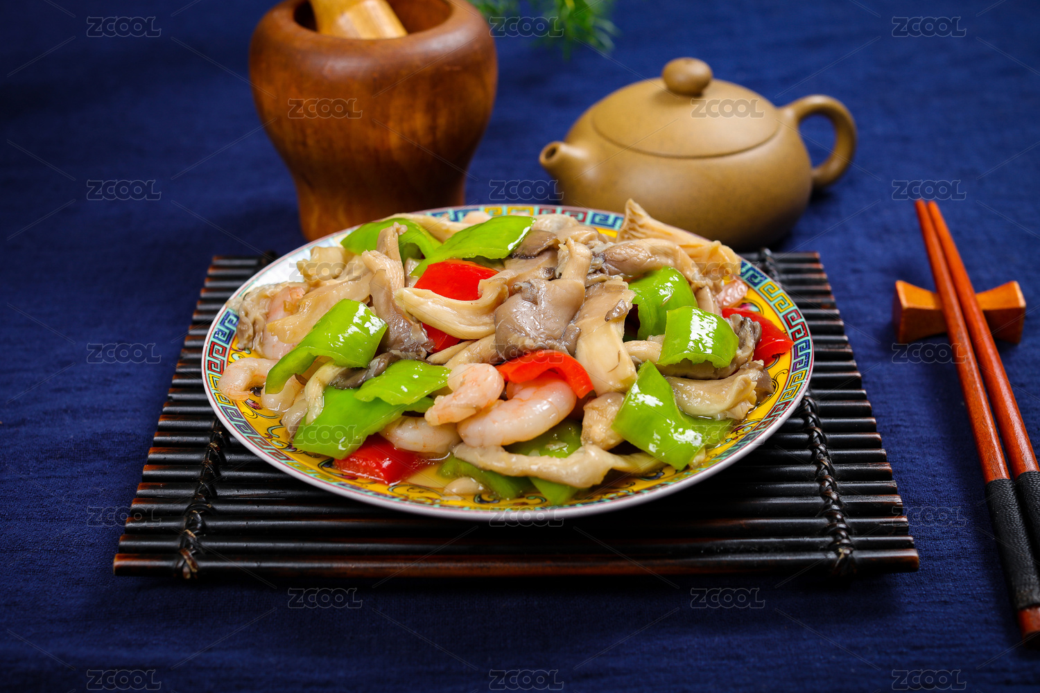 中餐特色美食辣椒洋葱爆炒生蚝干
