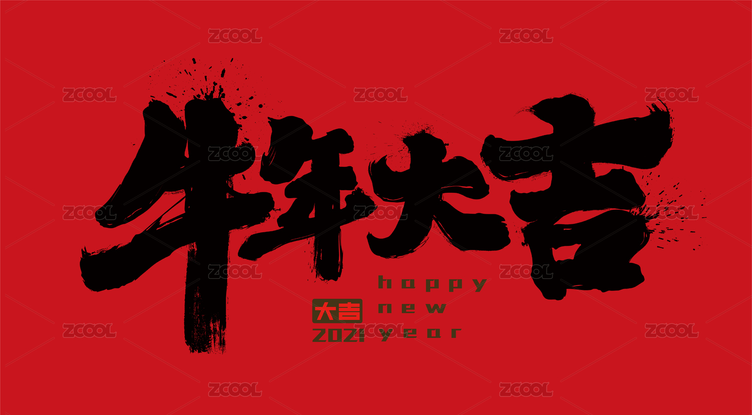 HEZODIAC2021,字体,手写,新年,快乐,牛年,毛笔,笔触,矢量,文字
