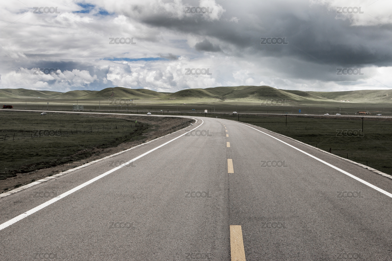 穿过高原草地的比直的公路