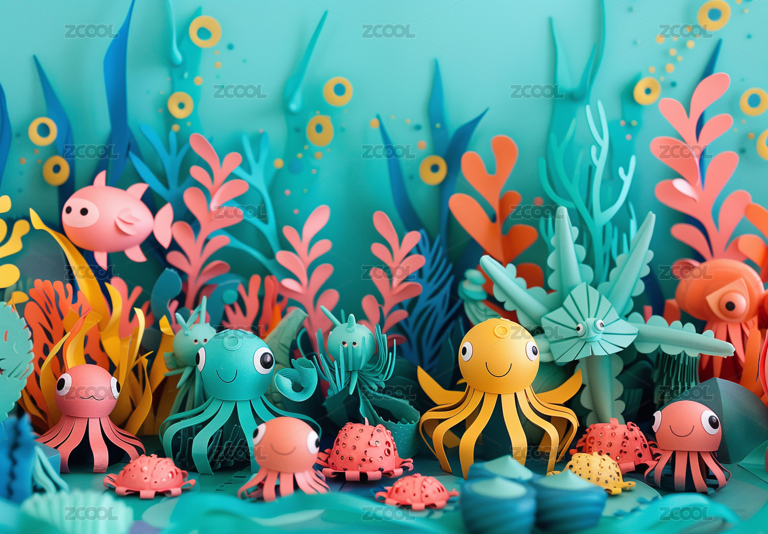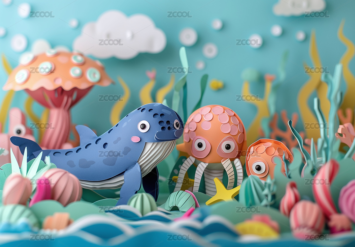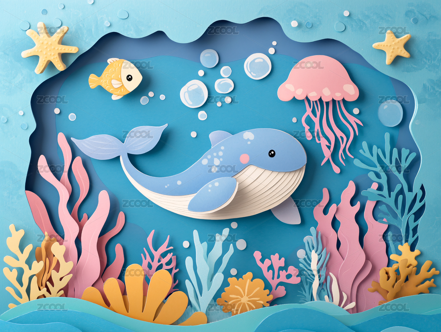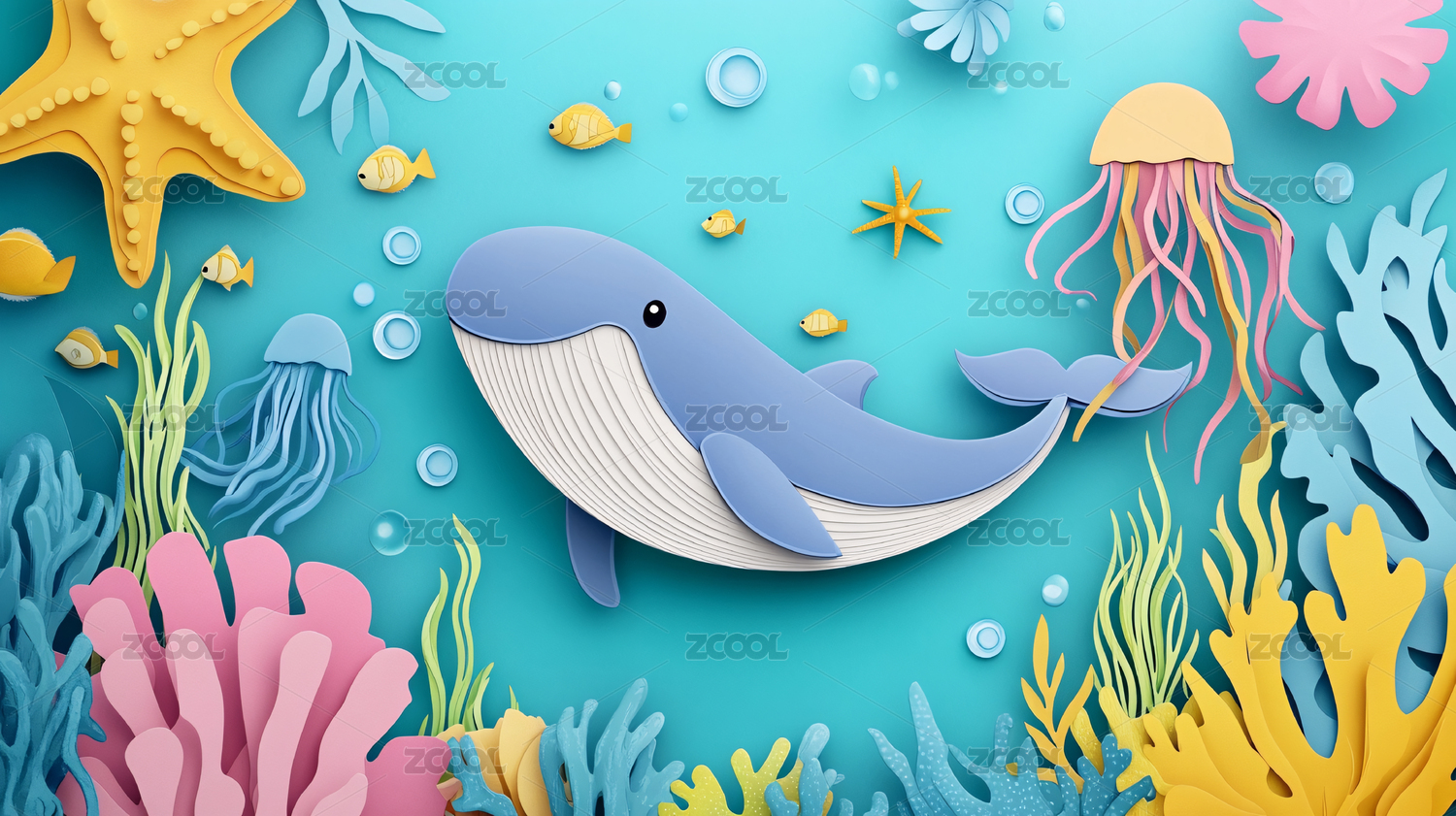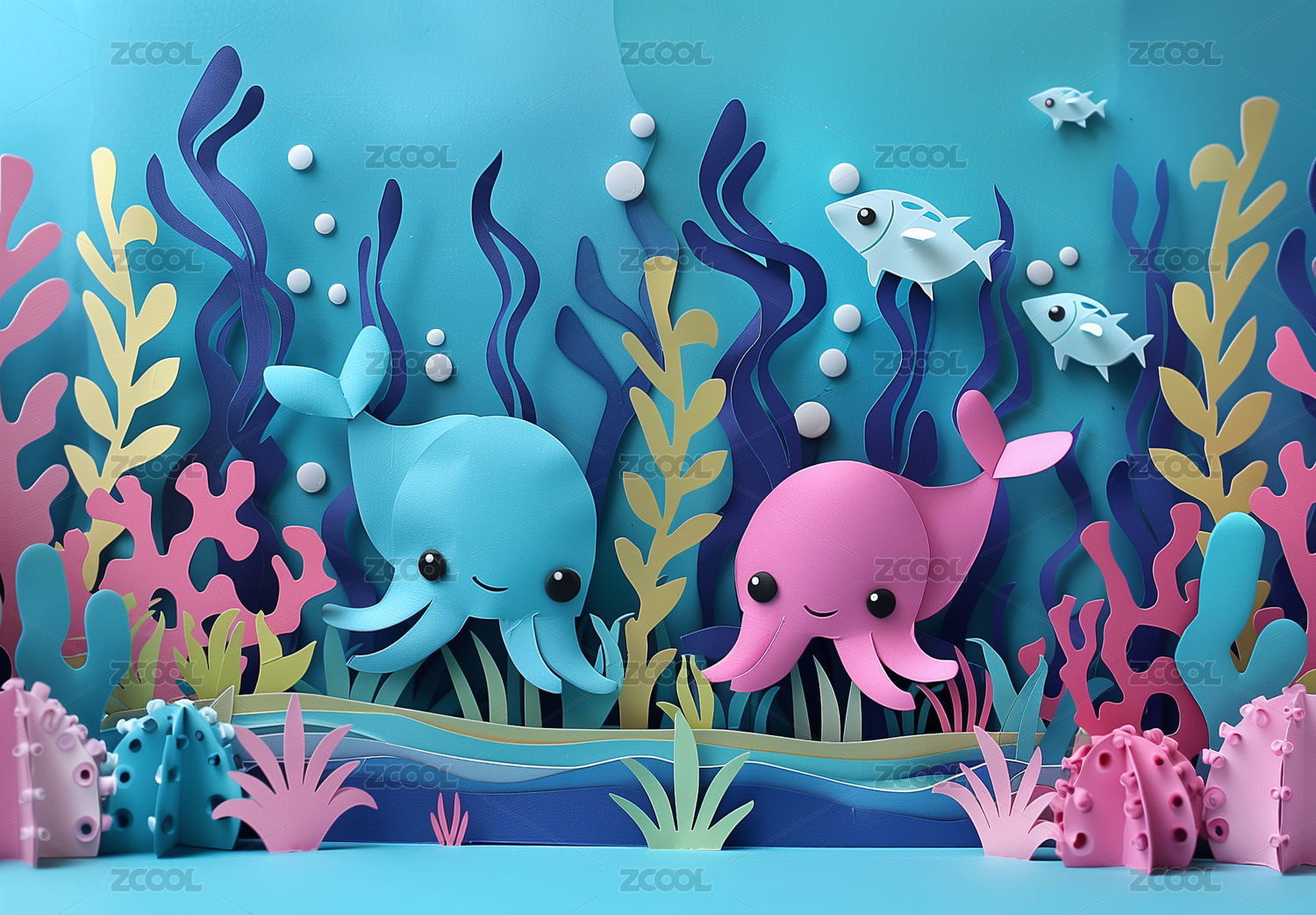 纸艺风格的水下世界