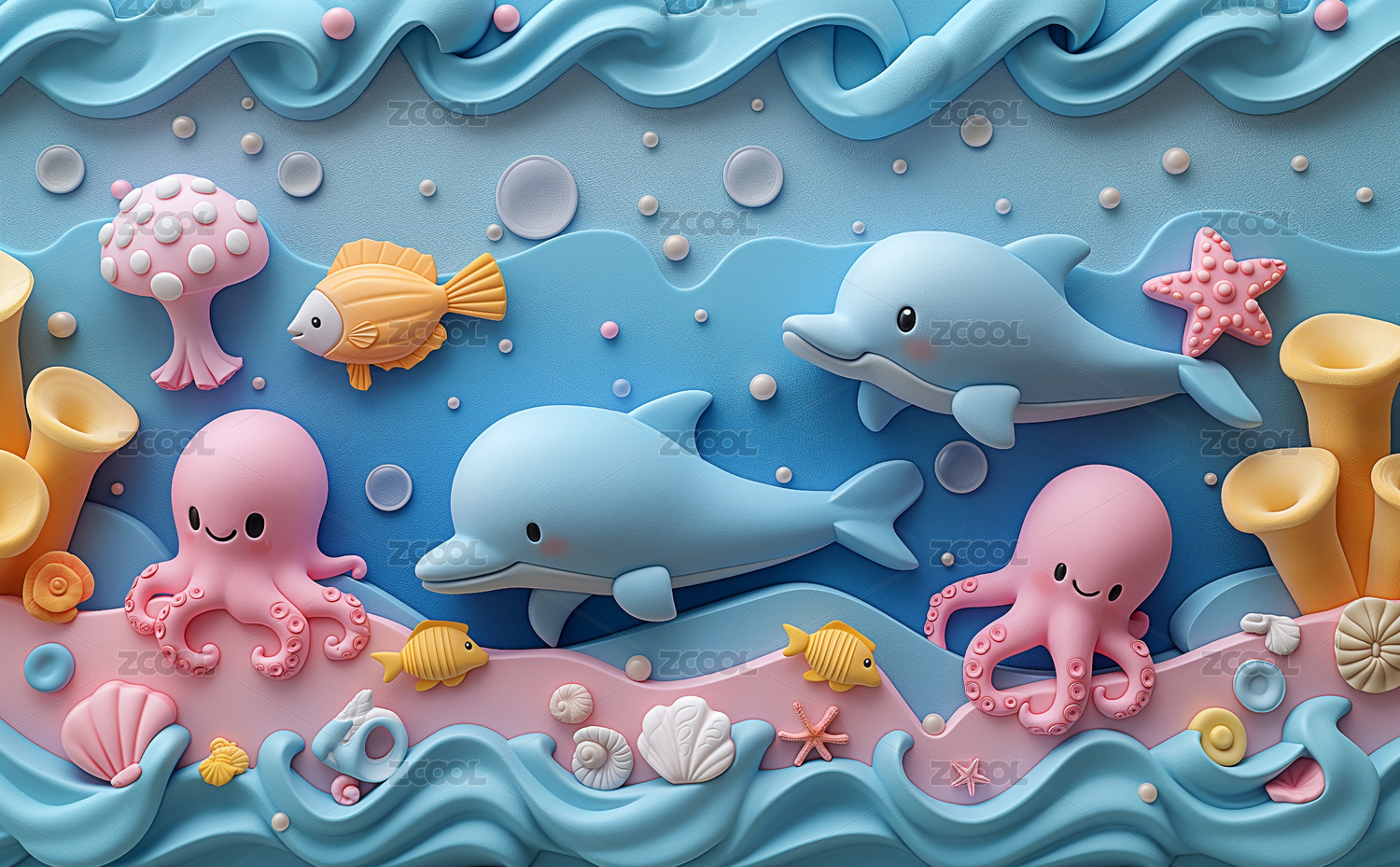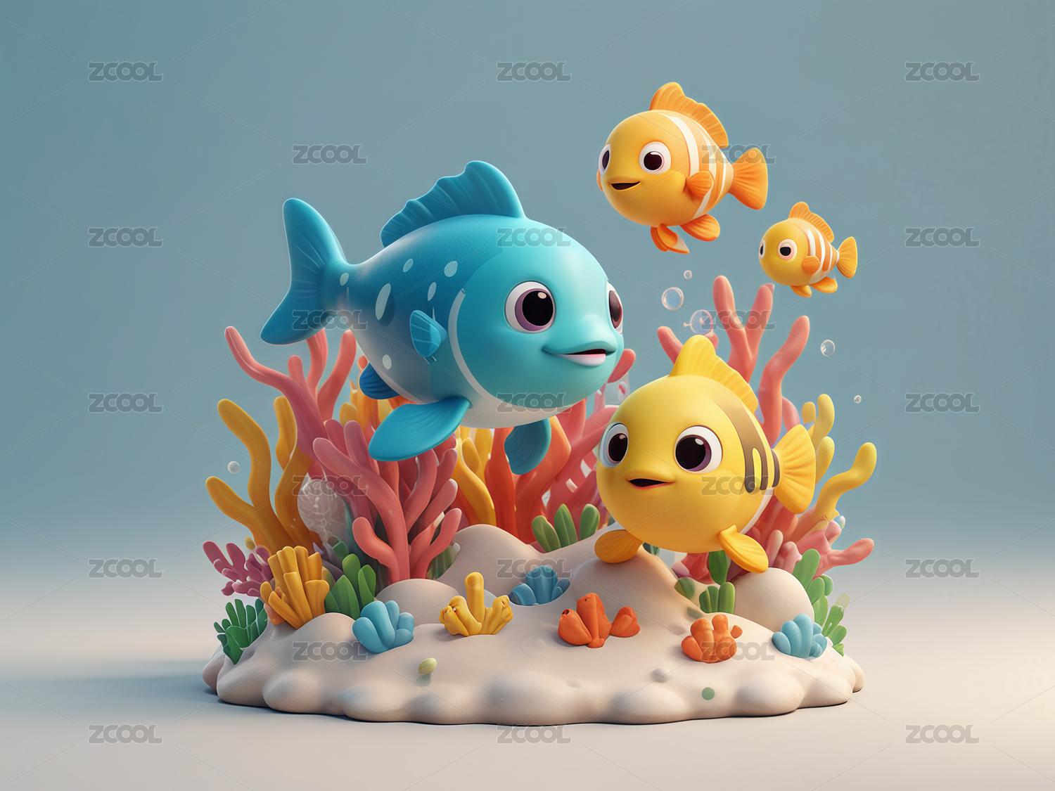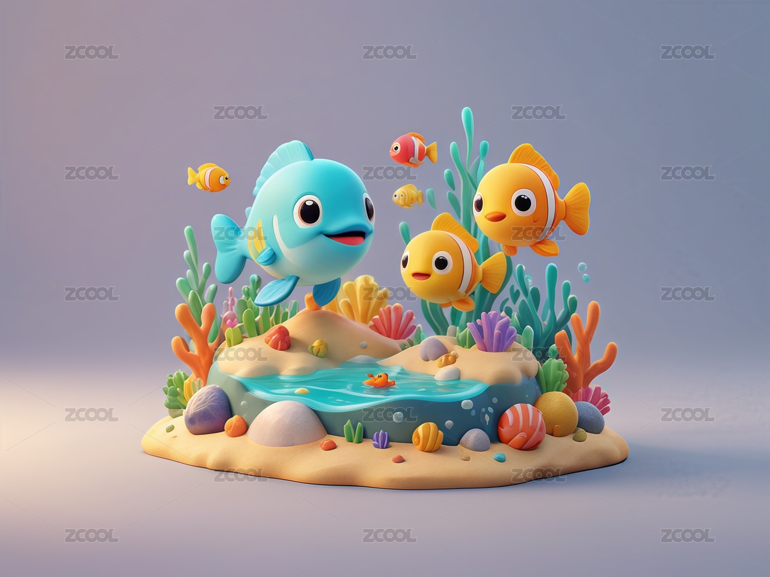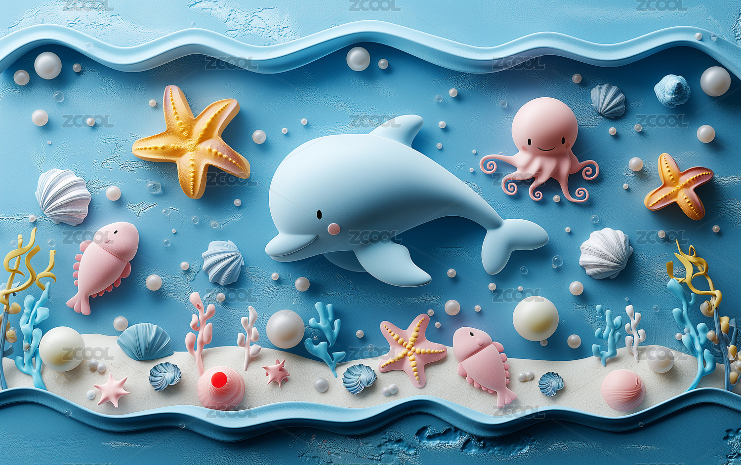海洋鱼类立体黏土风元素