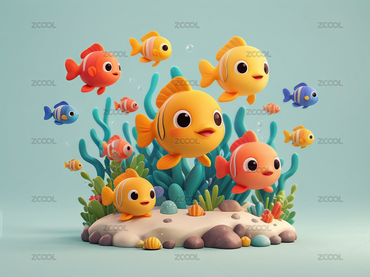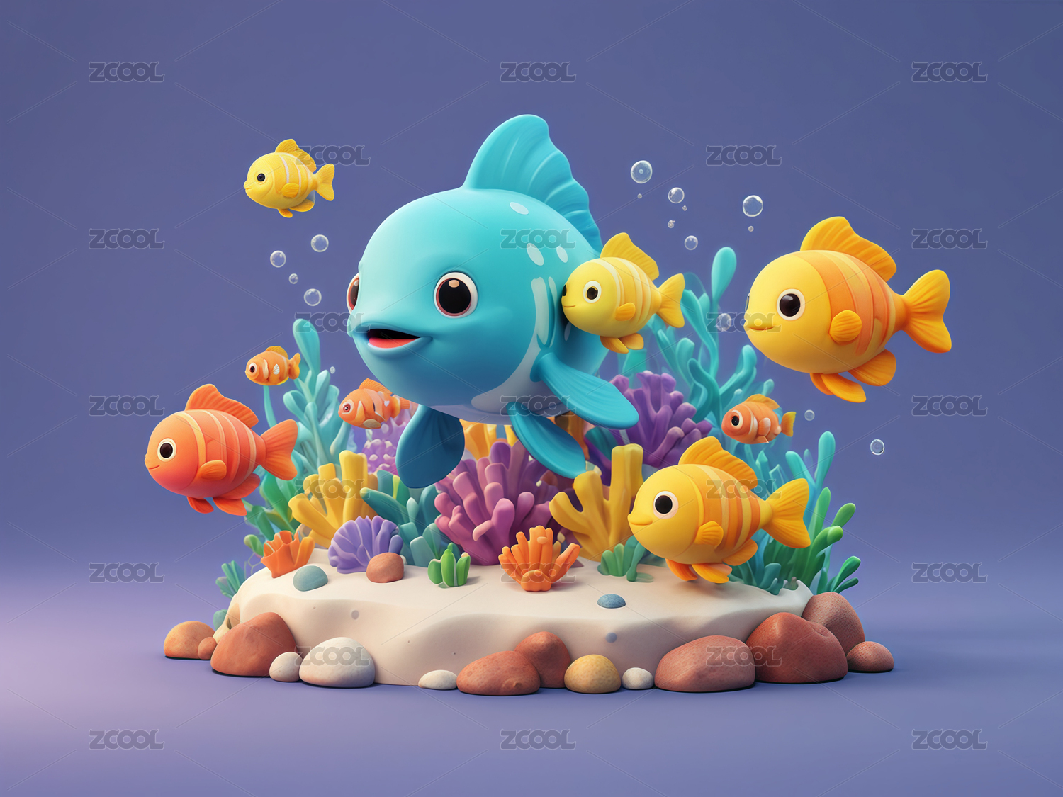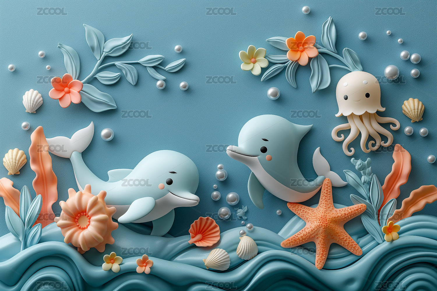 海洋鱼类立体黏土风元素