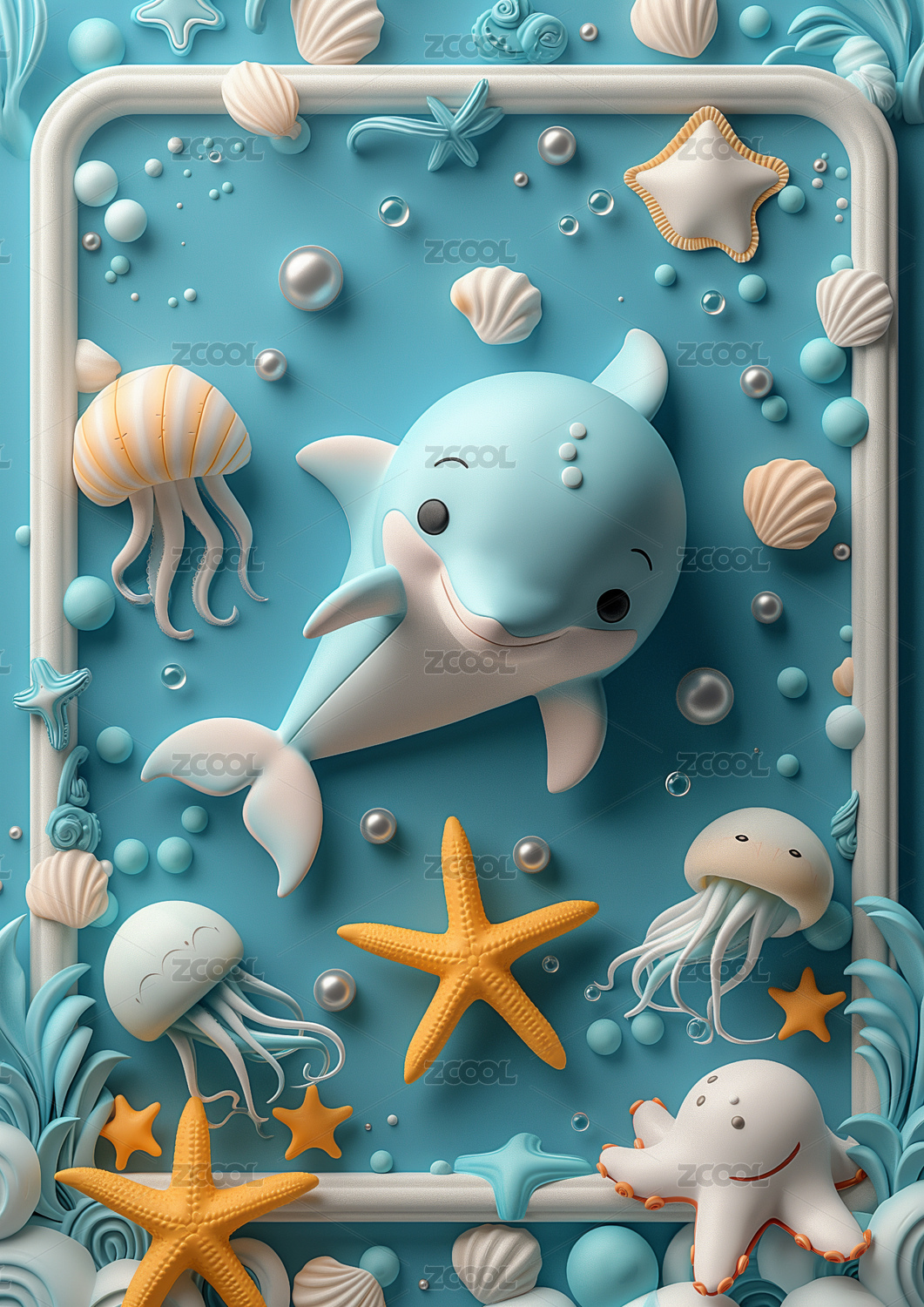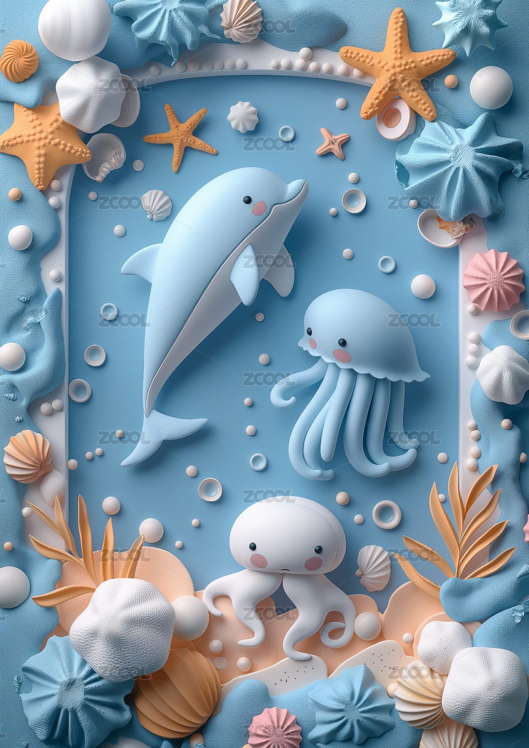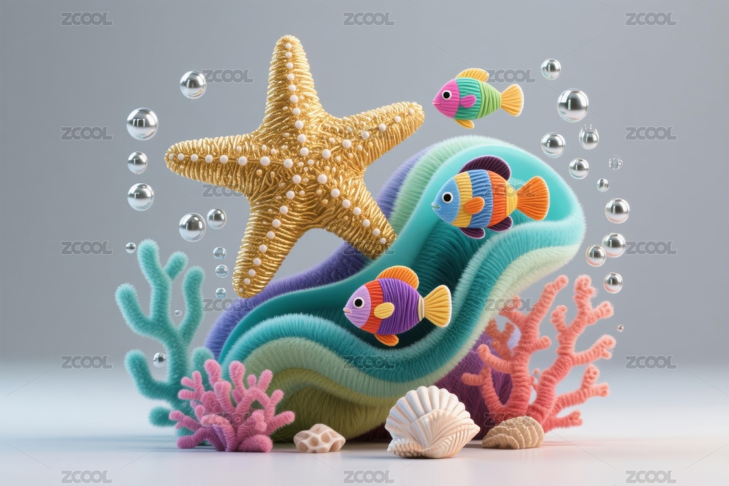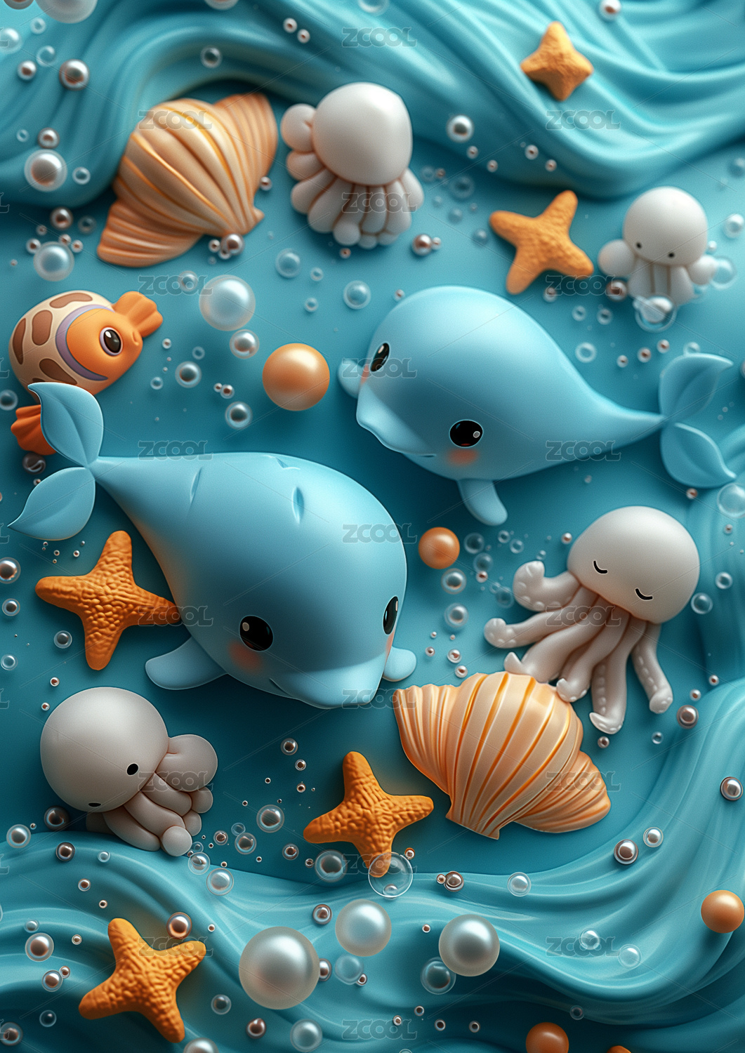海洋鱼类立体黏土风元素