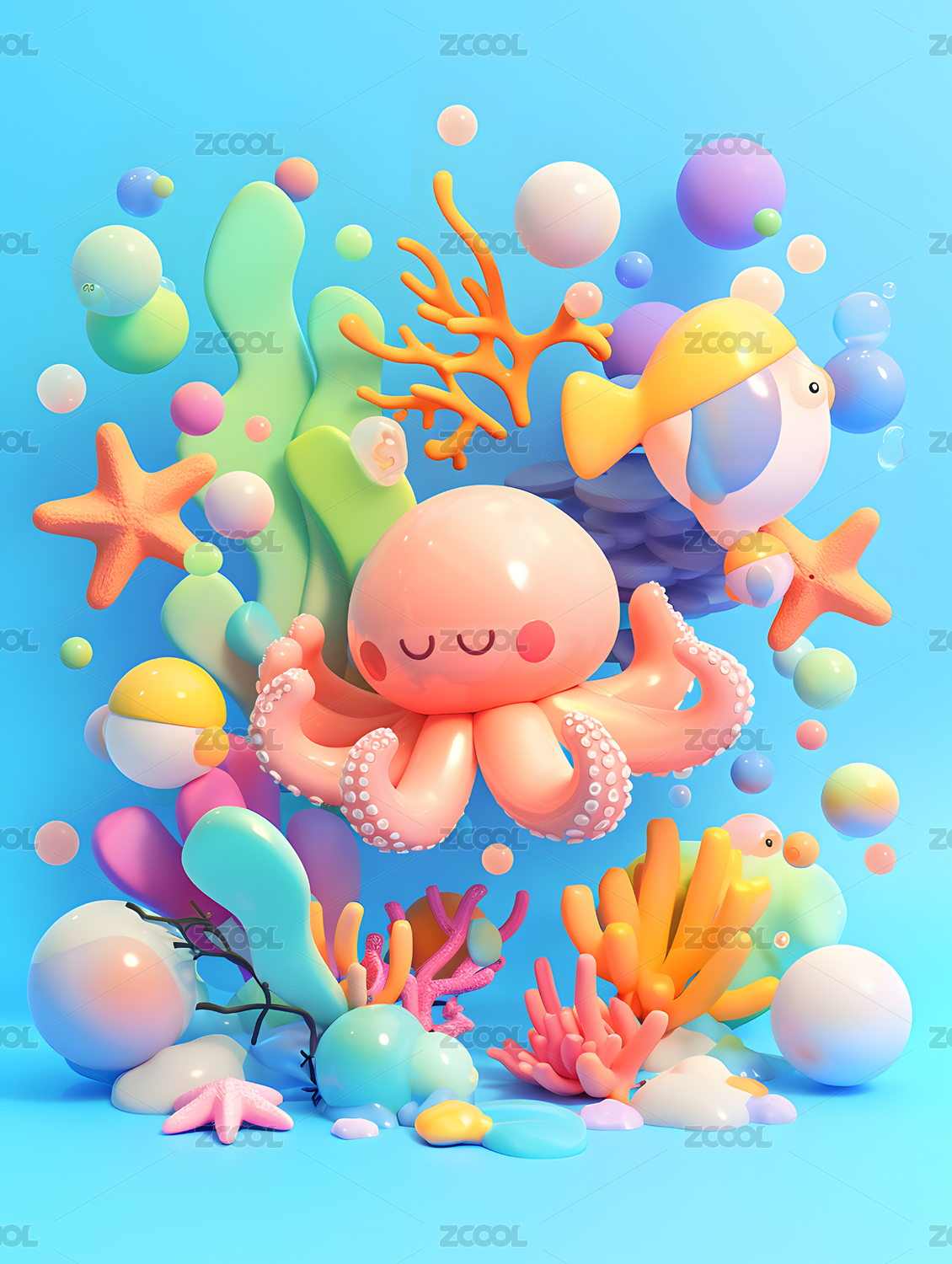 海底生物装饰展示场景