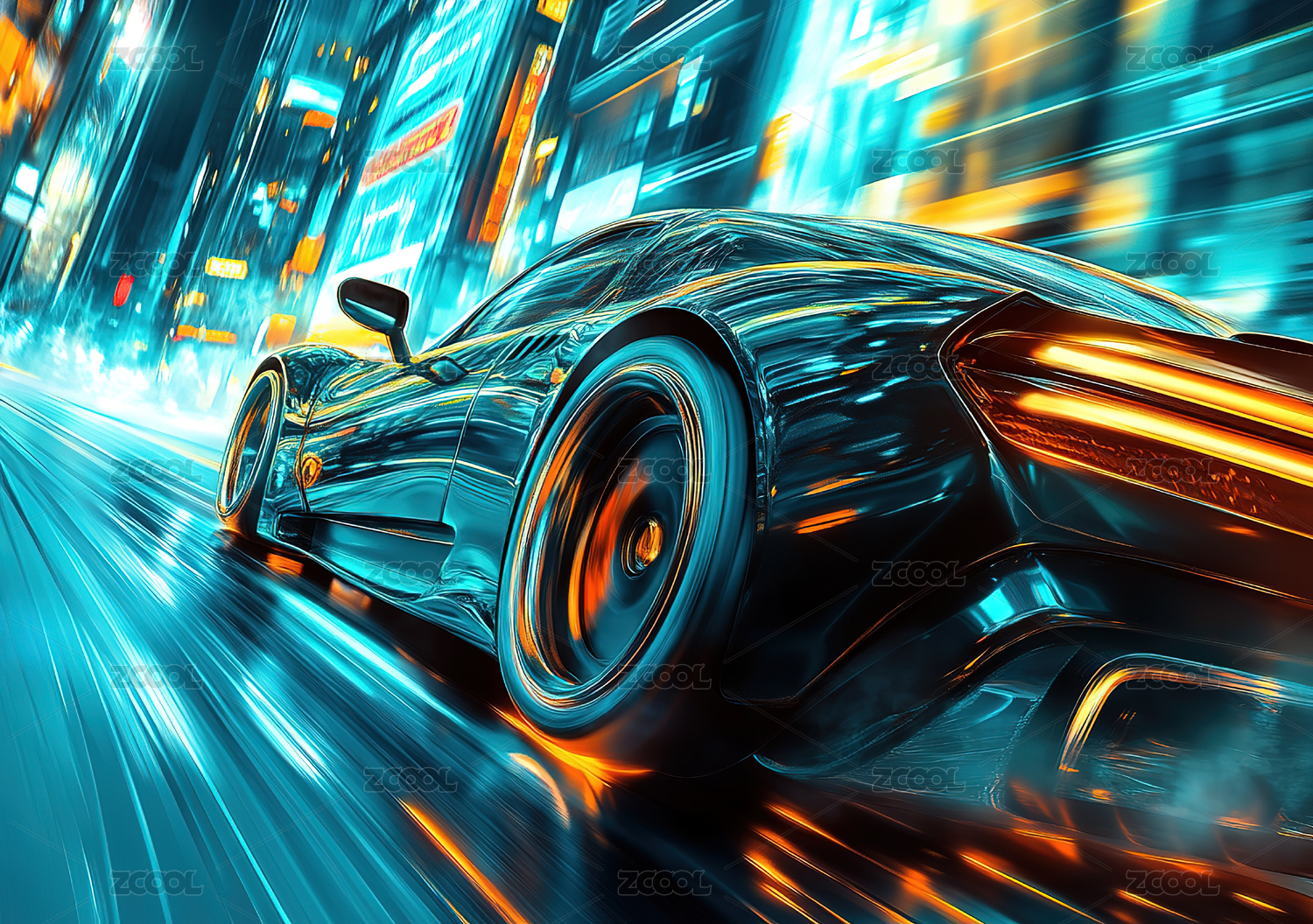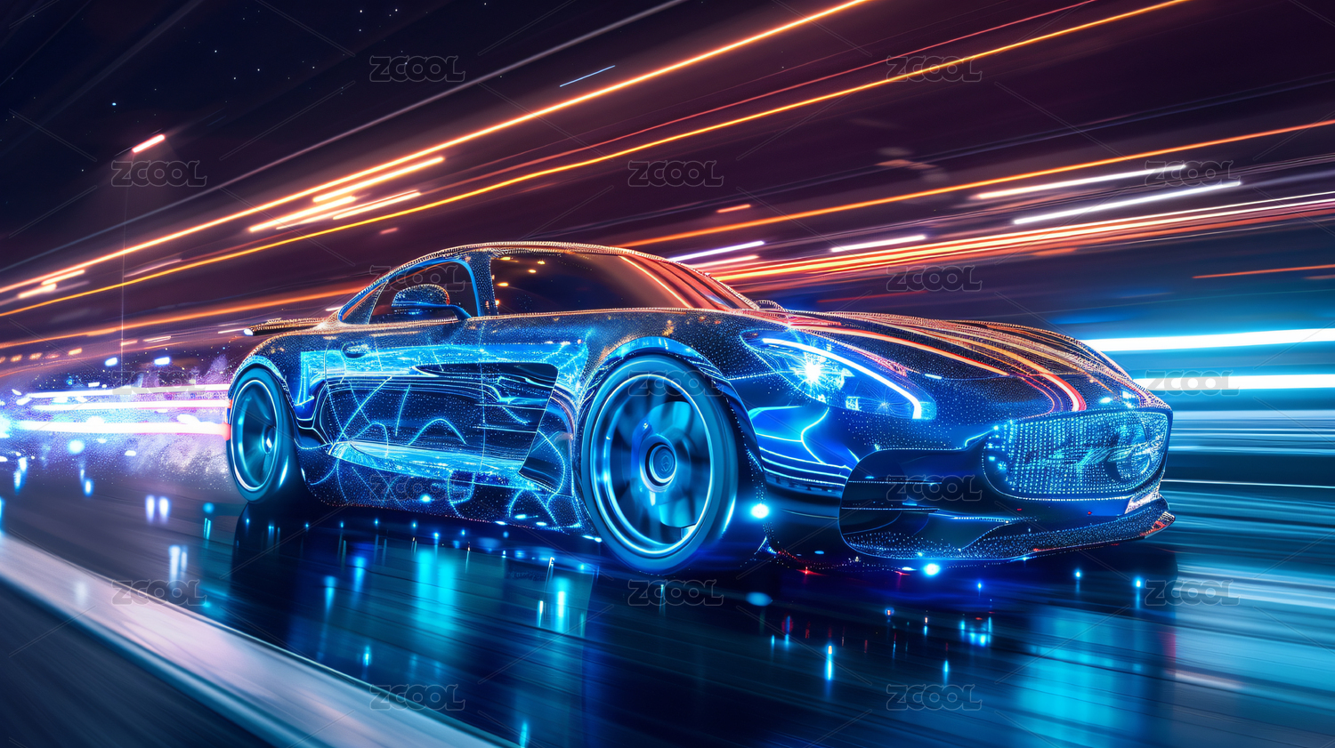 蓝色科技风时光隧道汽车运动炫酷大气背景