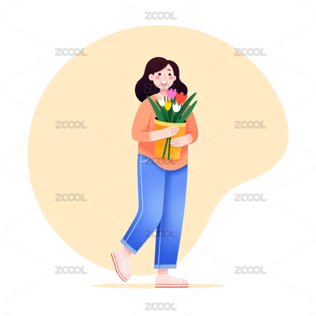 扁平肌理人物半弯腰卷发女孩