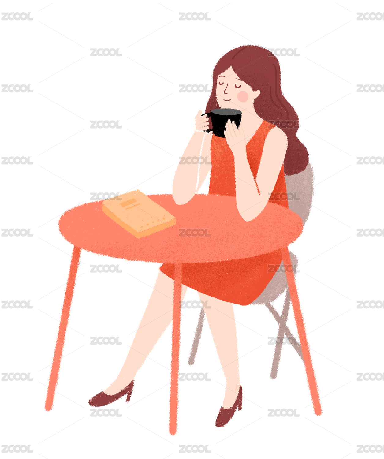 喝茶喝咖啡品下午茶的女孩女人插画
