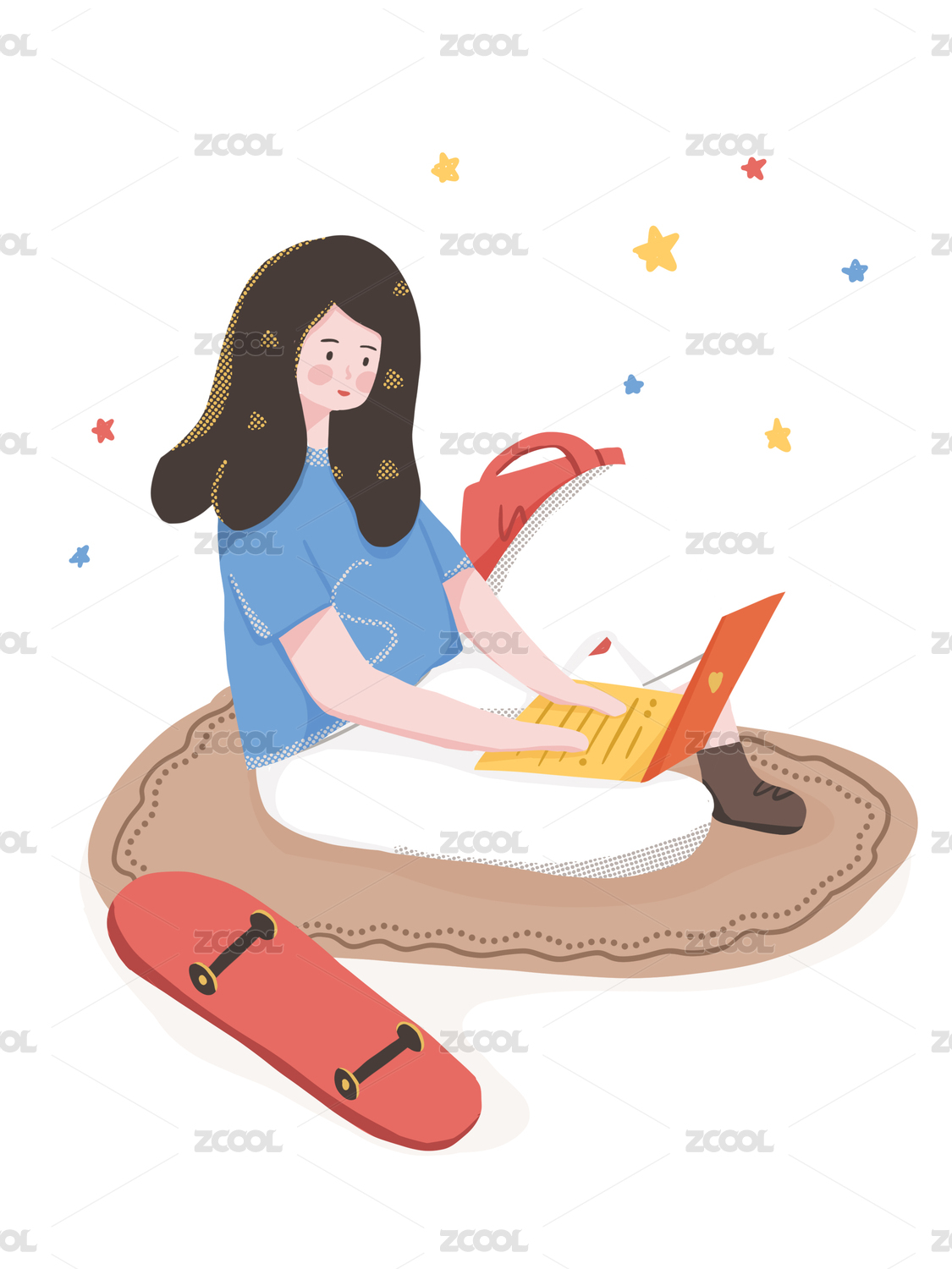滑板少年坐在地上敲键盘