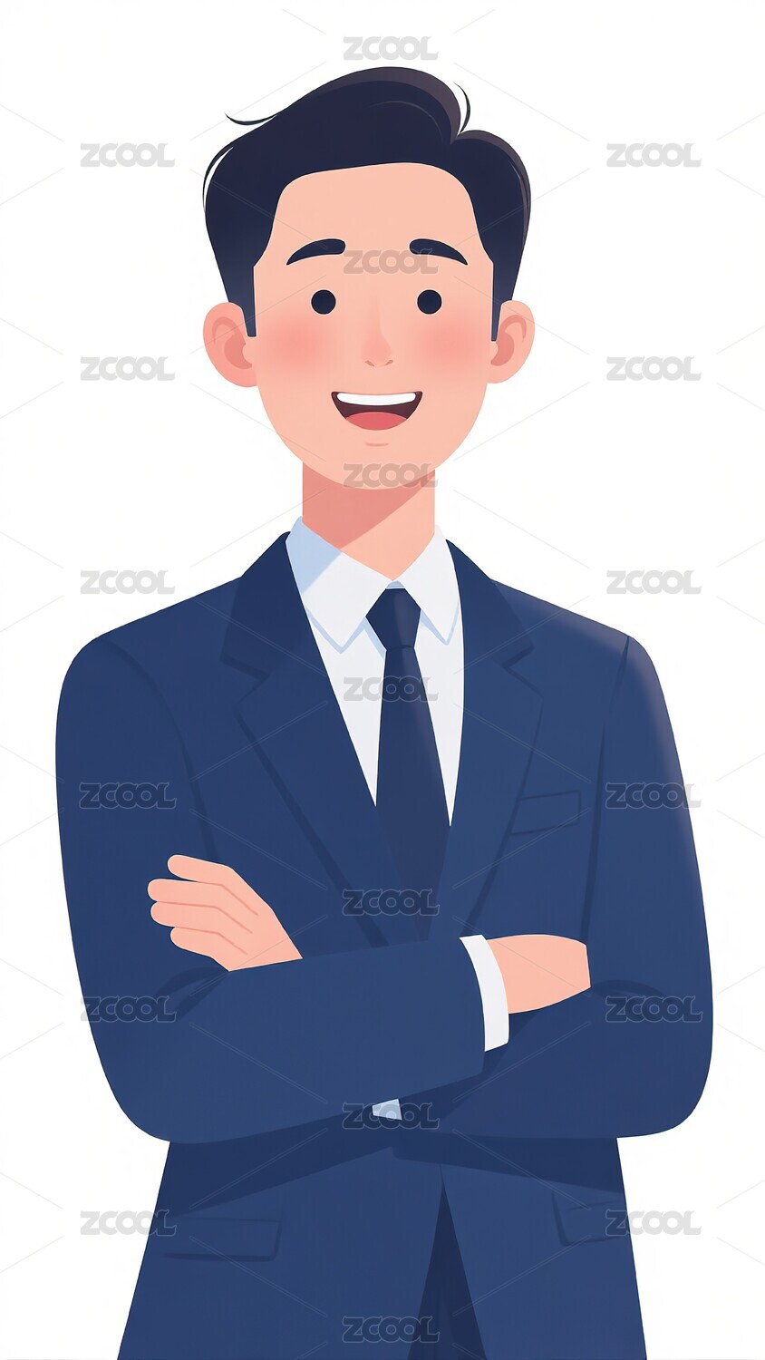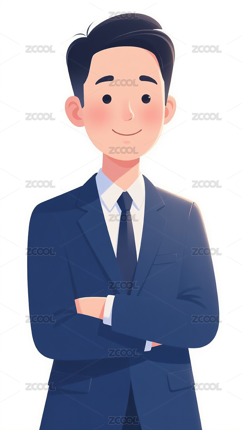极简商务插画男士站姿潇洒微笑白色背景动漫