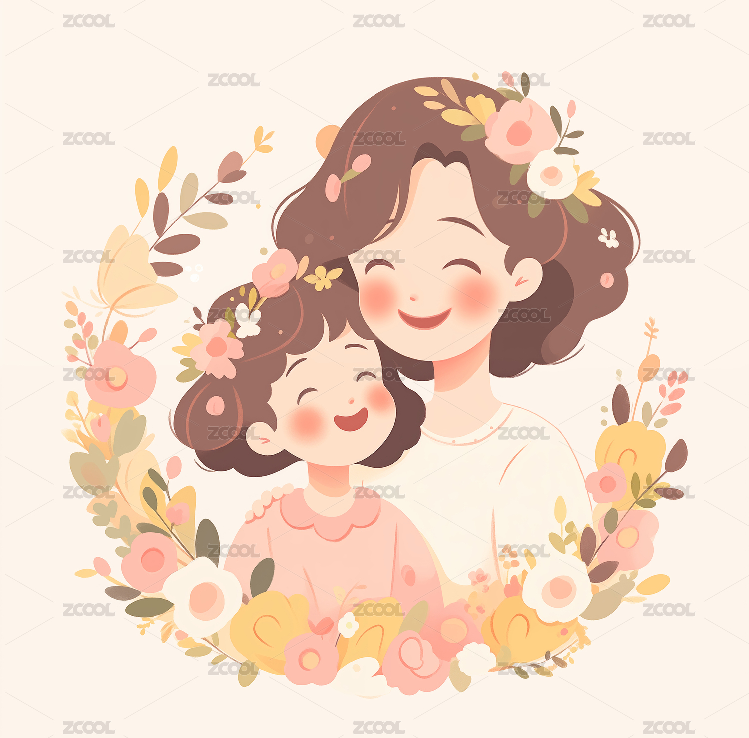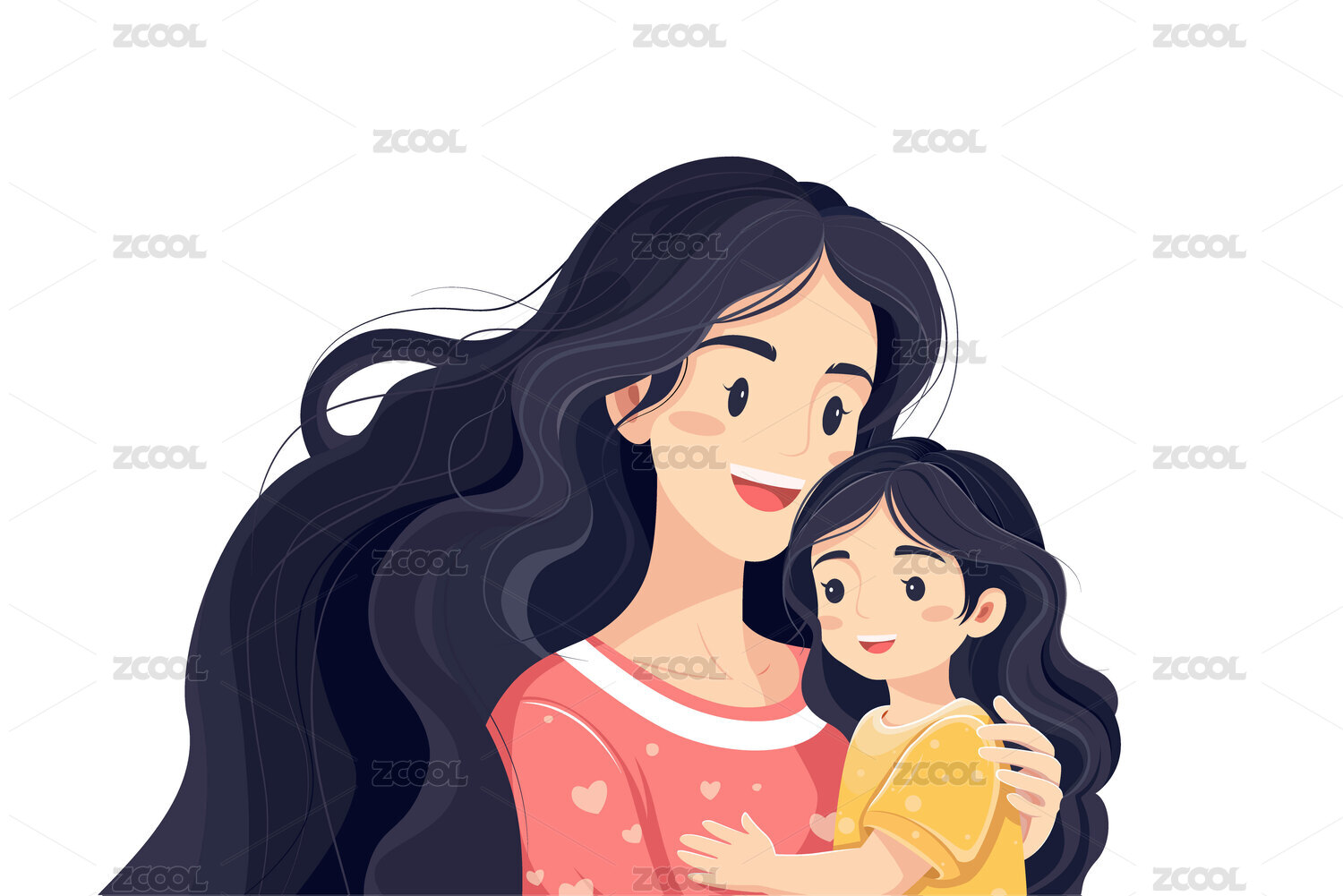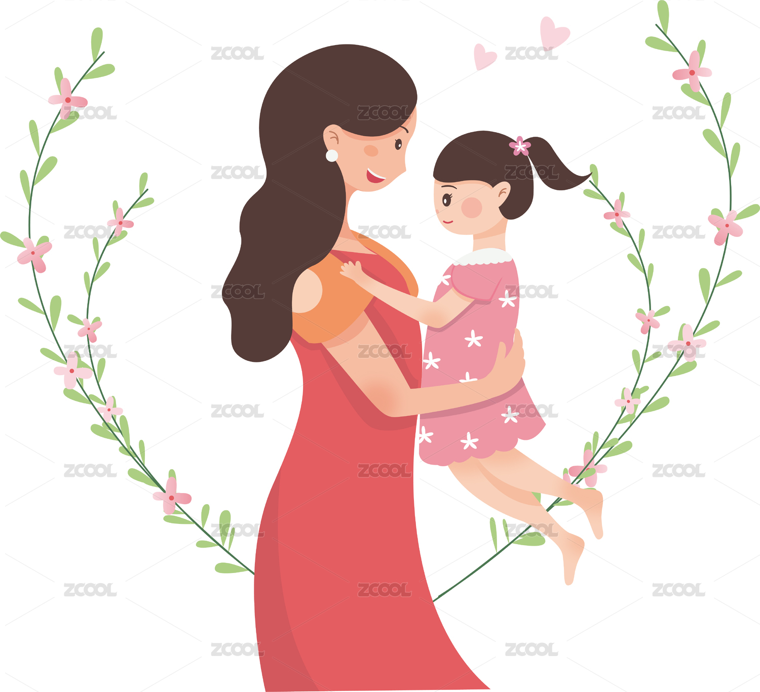 母亲节母女拥抱插画感恩节家人庆祝活动海报