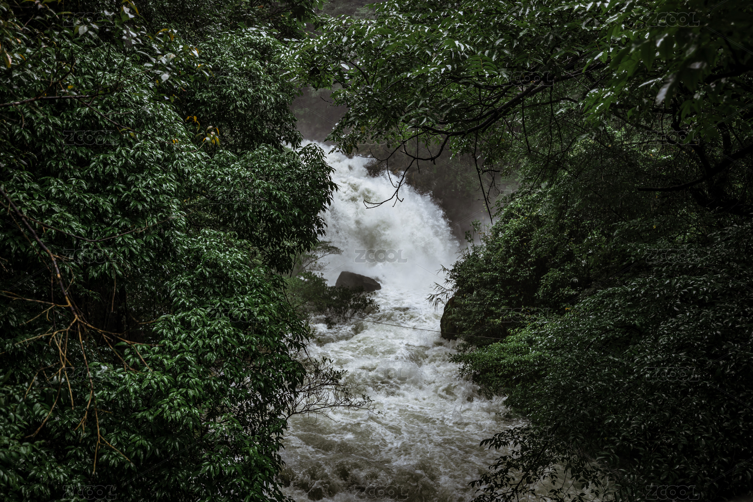 中国四川成都邛崃市天台山月洞飞水瀑布风光