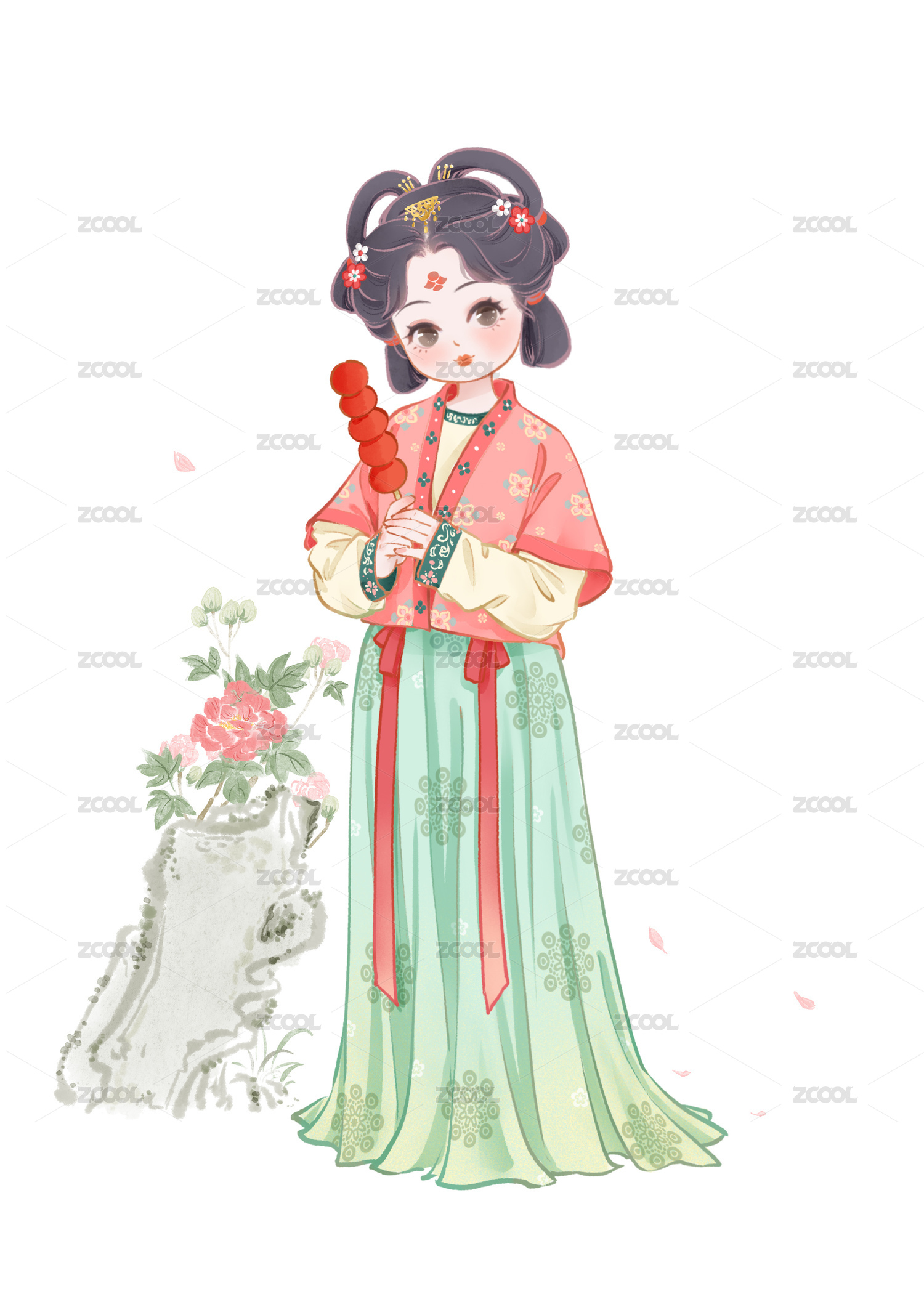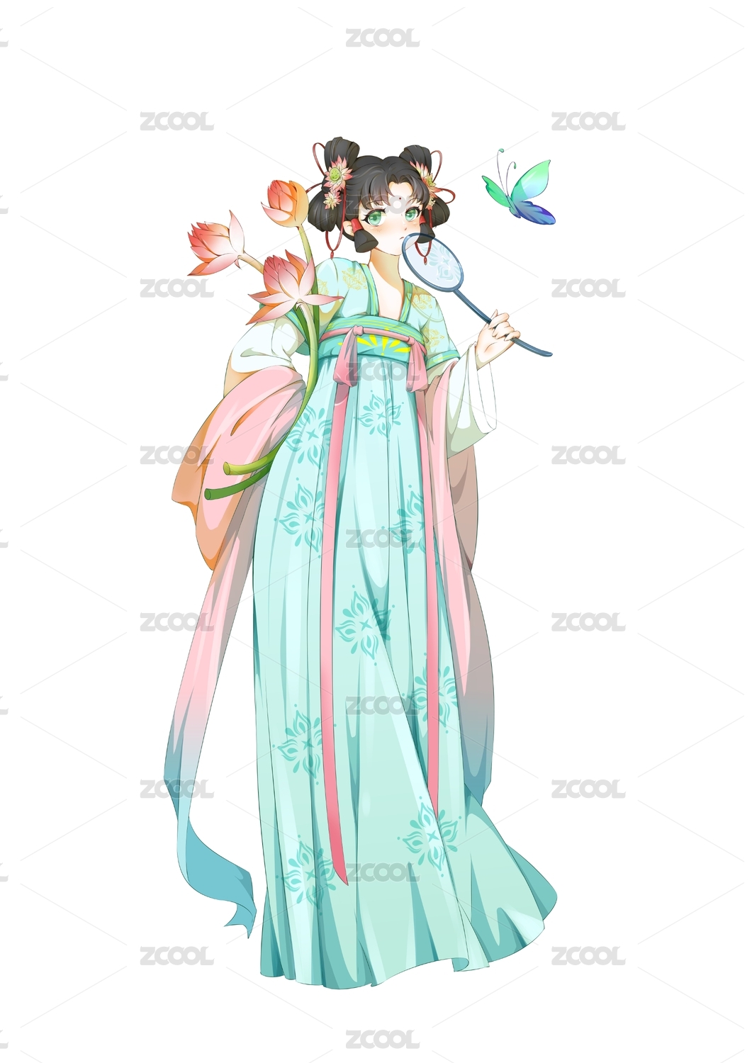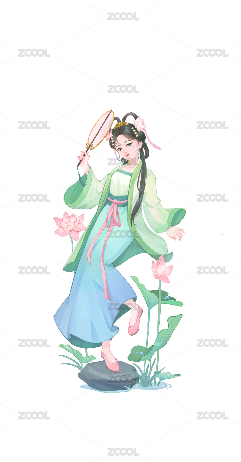 古风国潮汉服美女节日节气花朵荷梅水仙牡丹