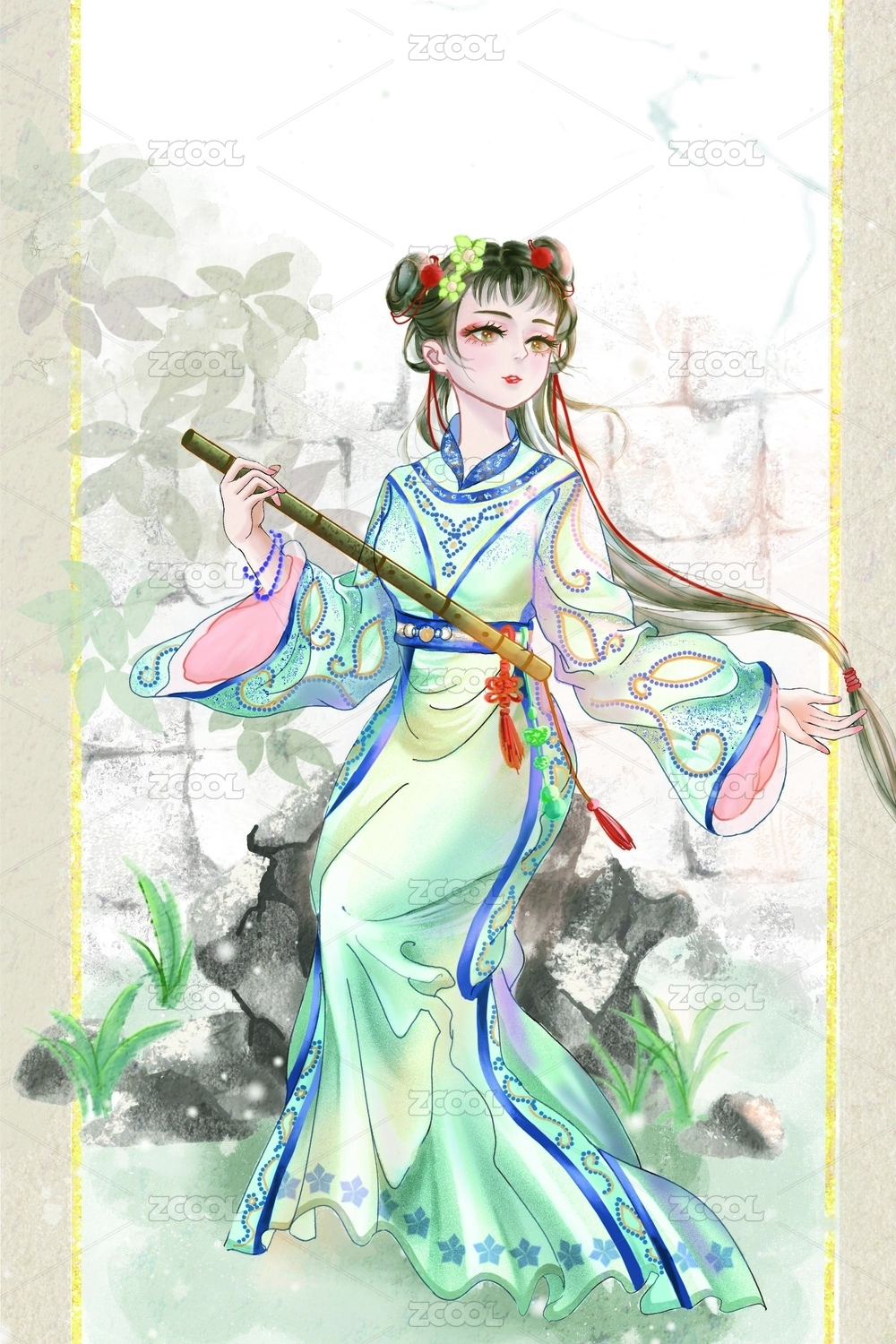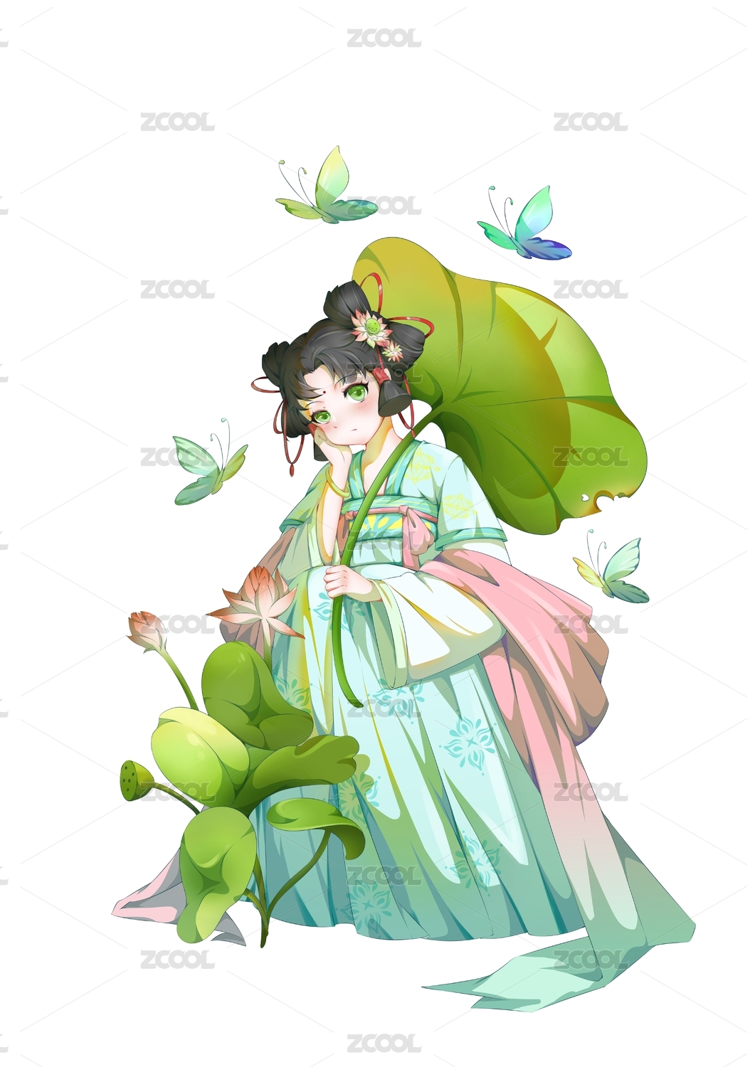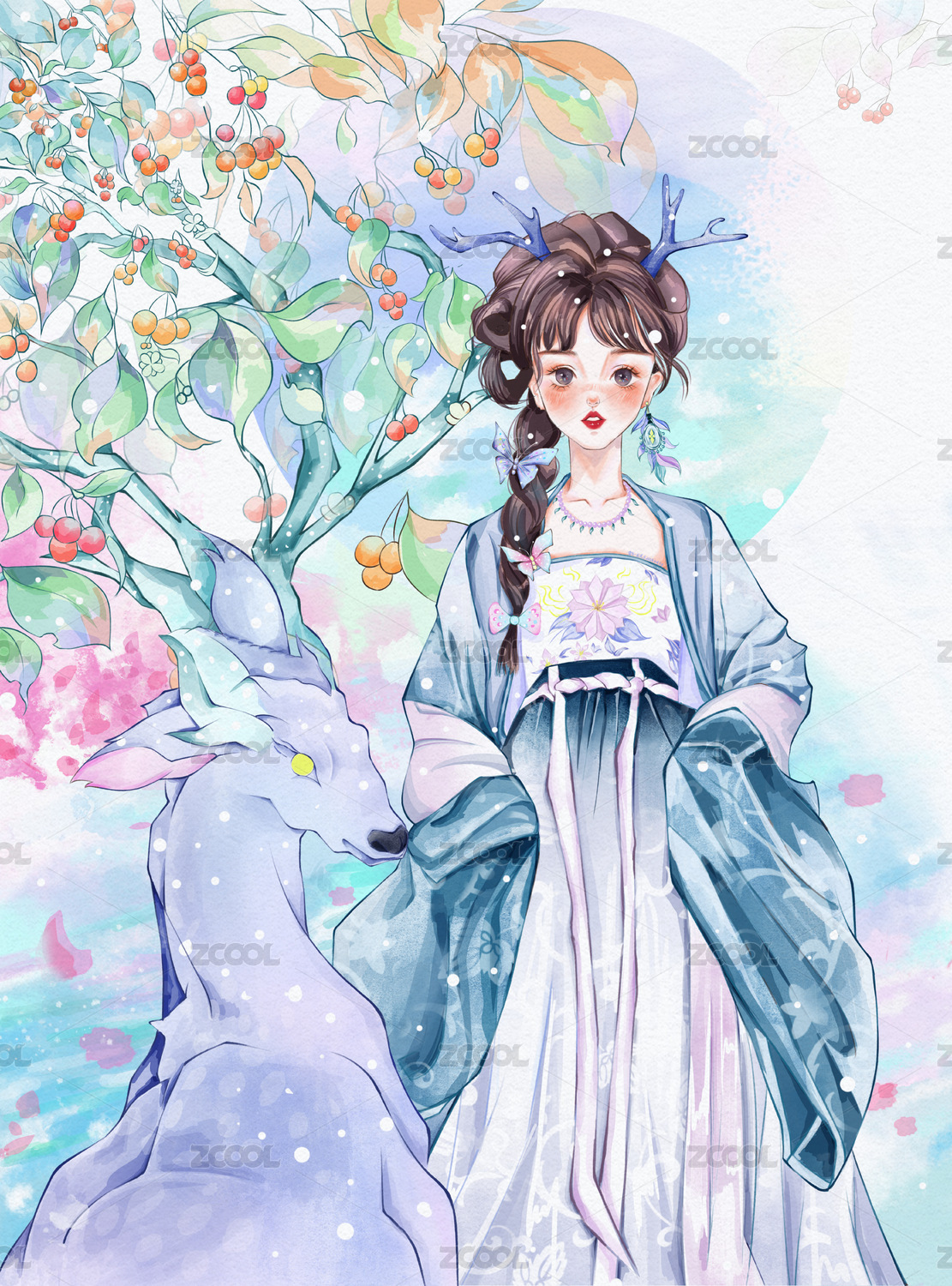 古风国潮汉服美女节日节气花朵荷梅水仙牡丹