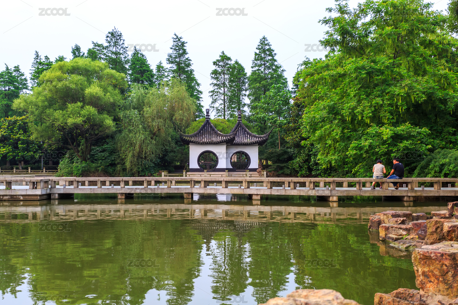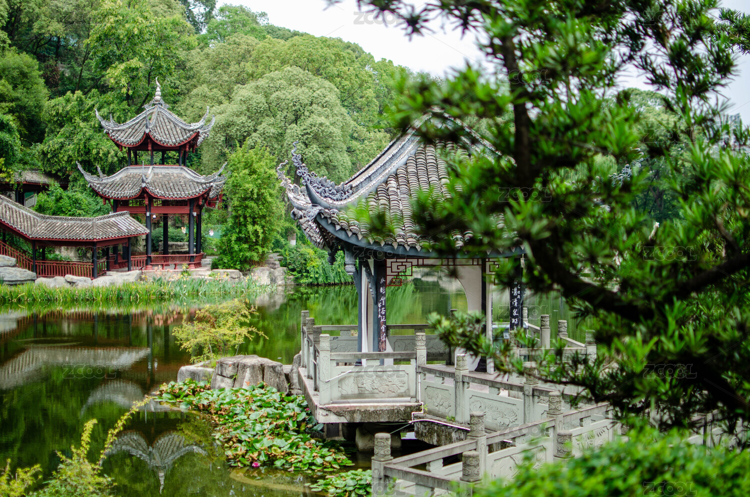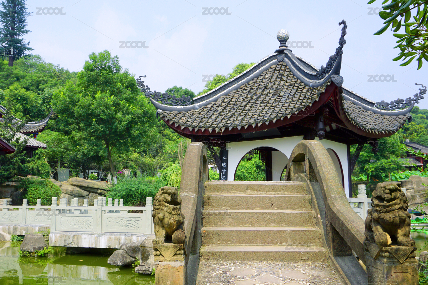 四川绵阳子云亭风景区中式水景园林九曲桥