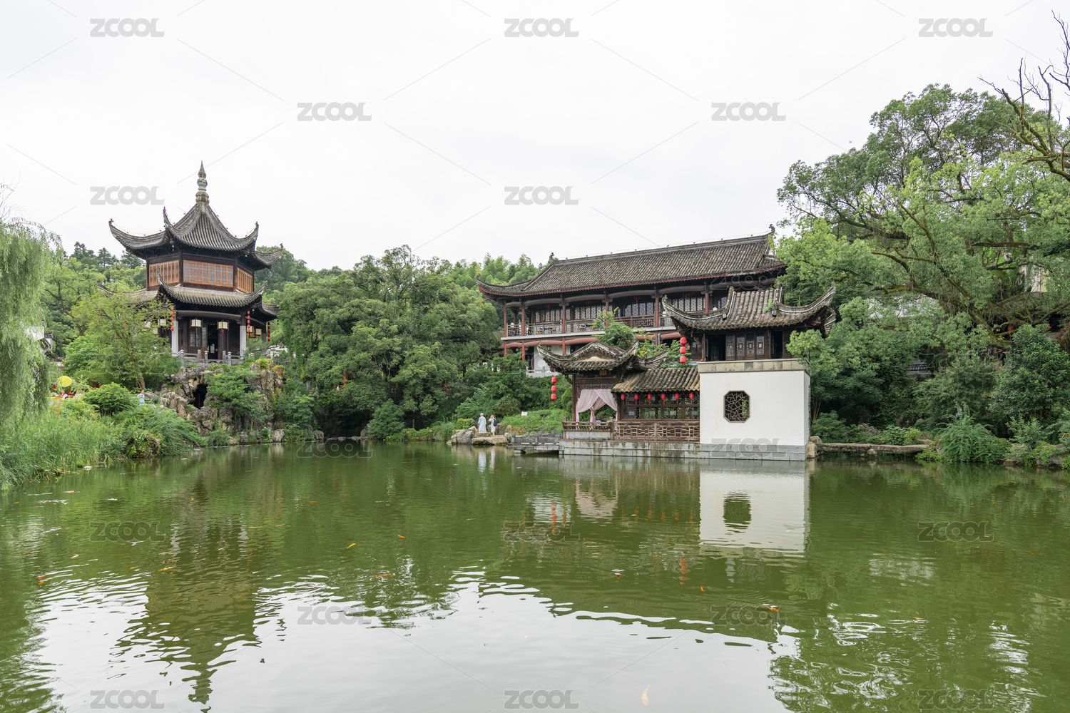 四川绵阳子云亭风景区中式水景园林小桥流水