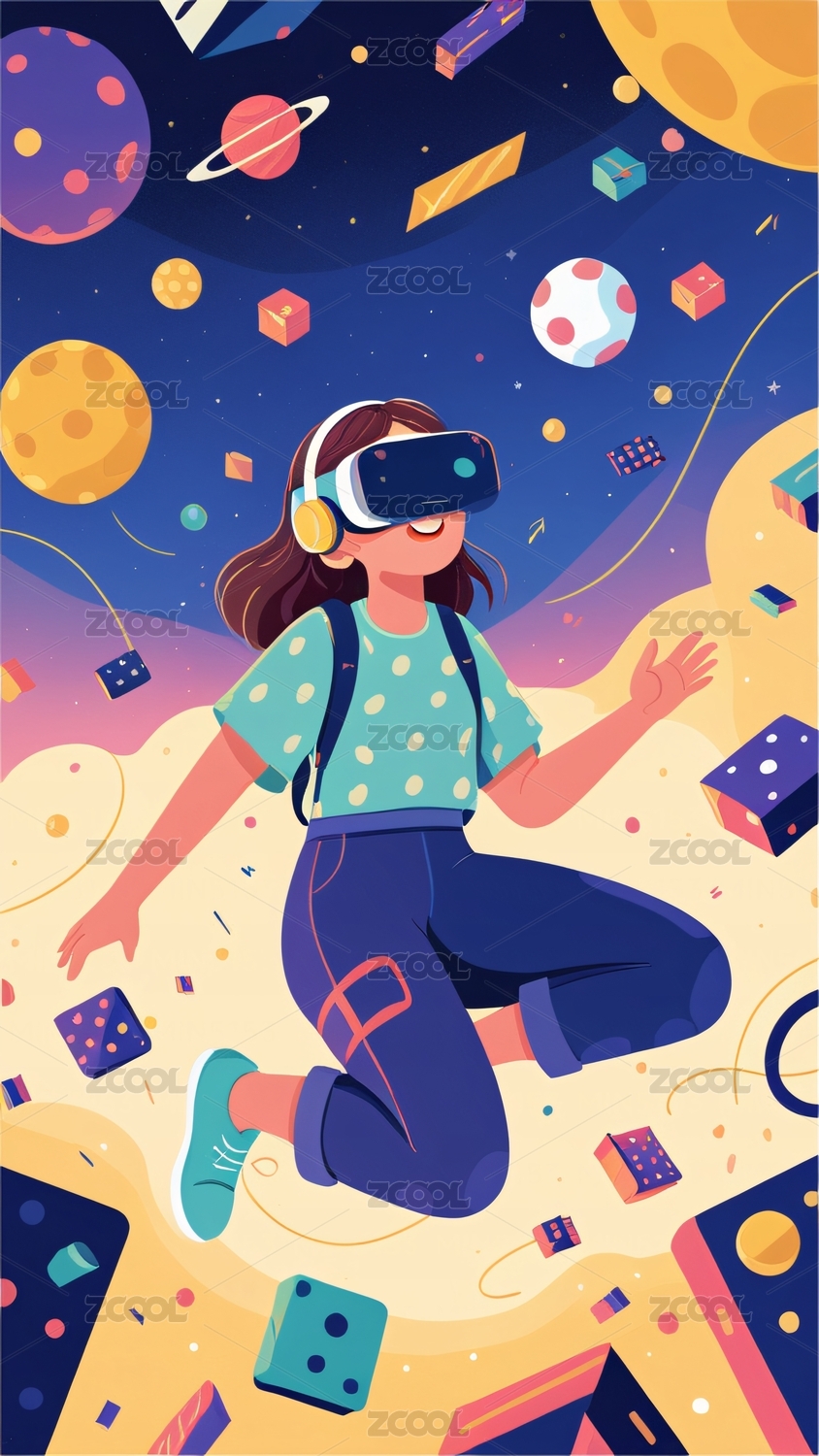 元宇宙插画VR眼镜人工智能高科技未来虚拟