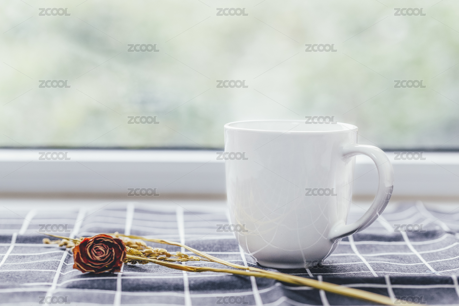 窗边桌上咖啡杯与柠檬的温馨光影场景
