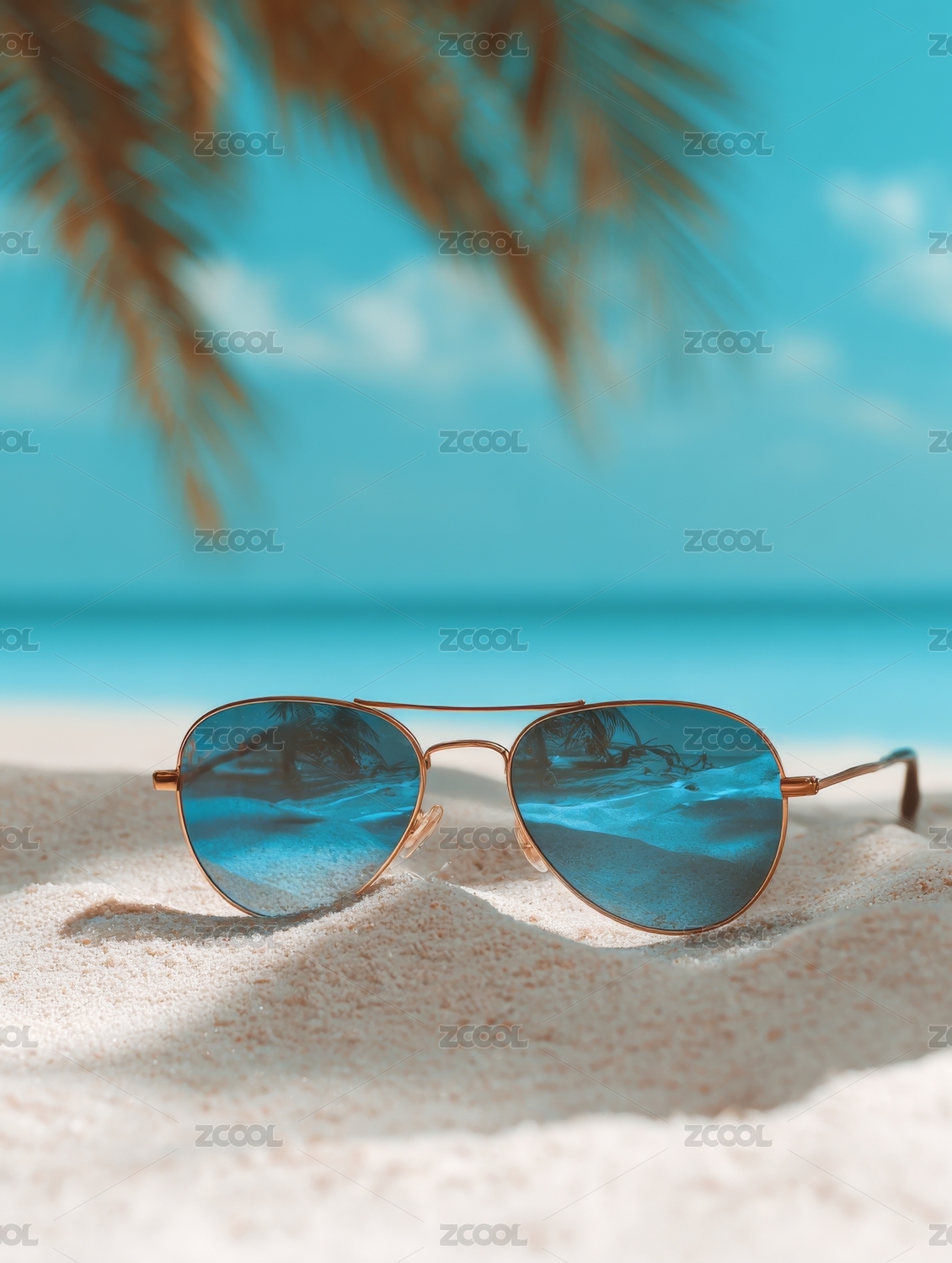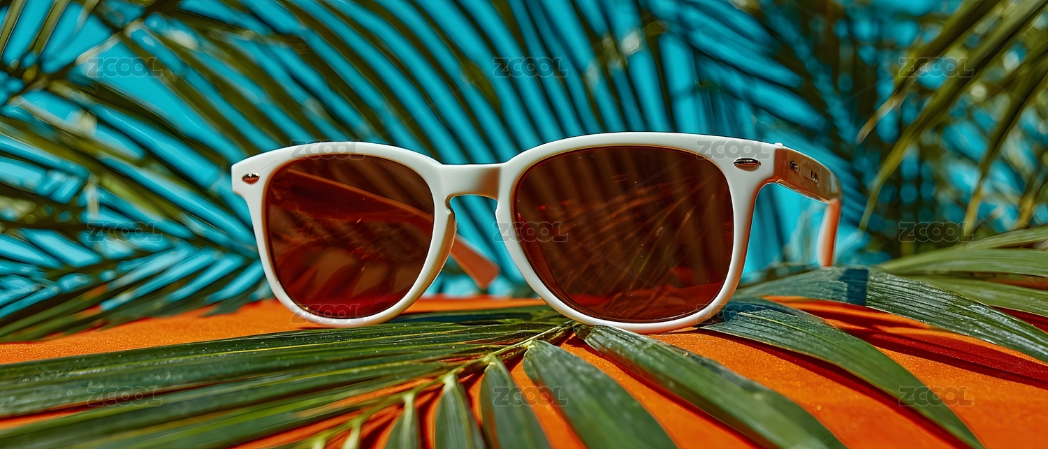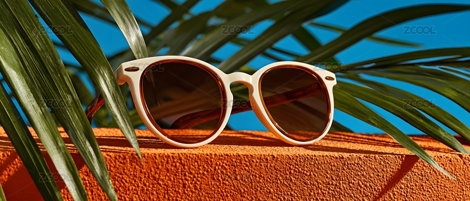 白色墨镜夏日棕榈叶