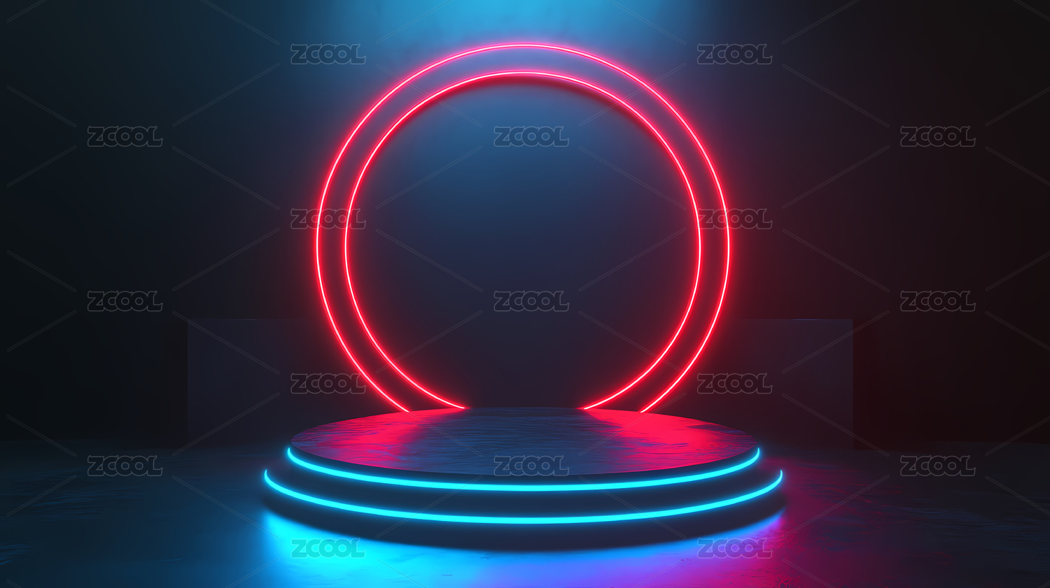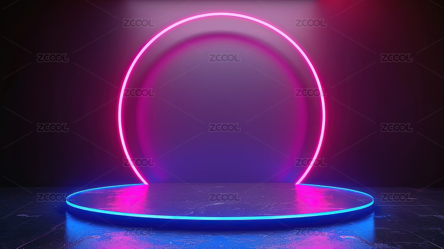 蓝色光环与粉色背景的炫酷舞台