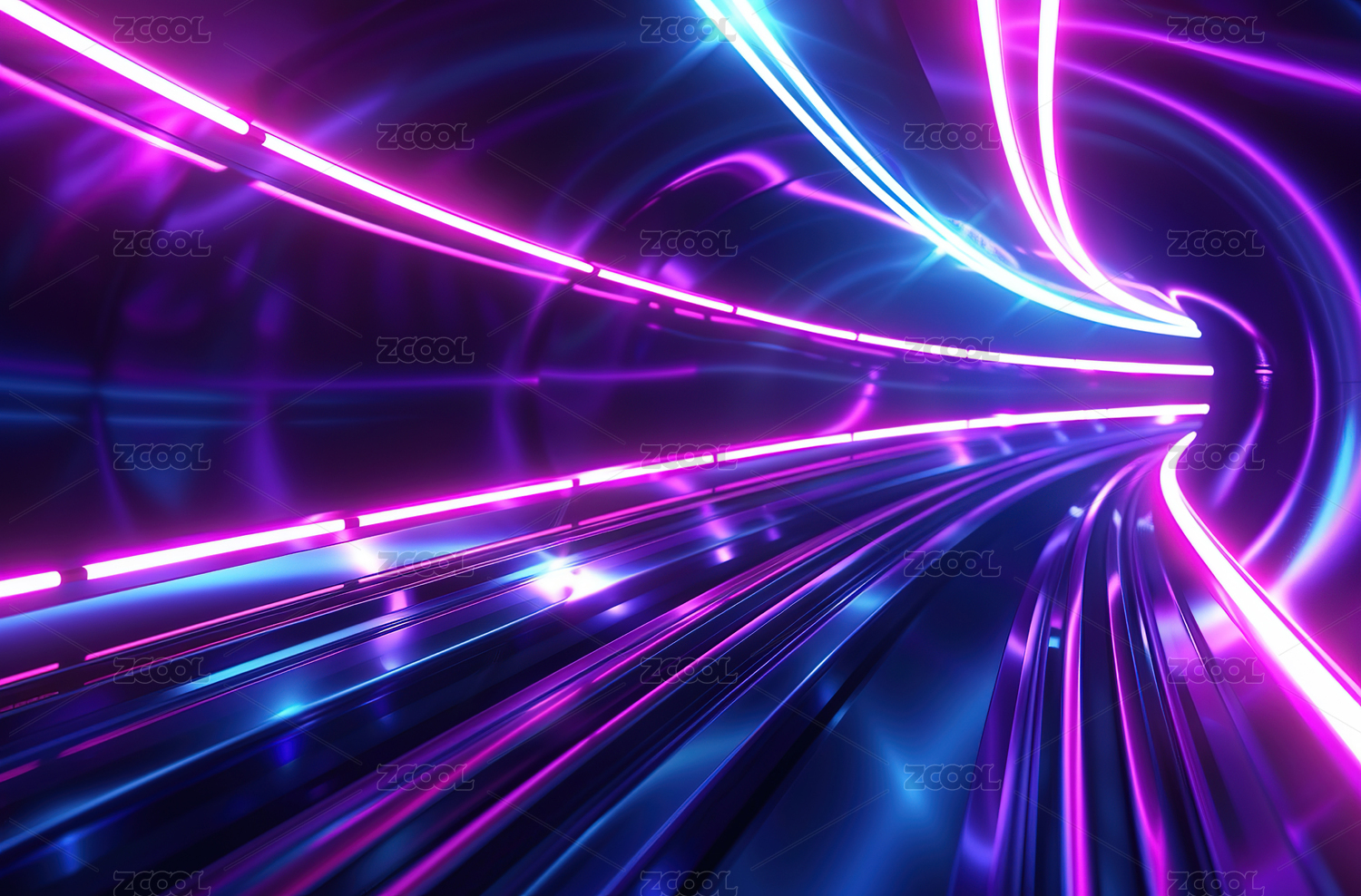 流线型速度光线蓝紫色特效,抽象科技蓝色K