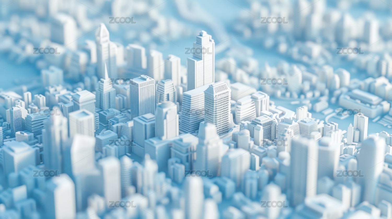 3D城市白色模型概念场景