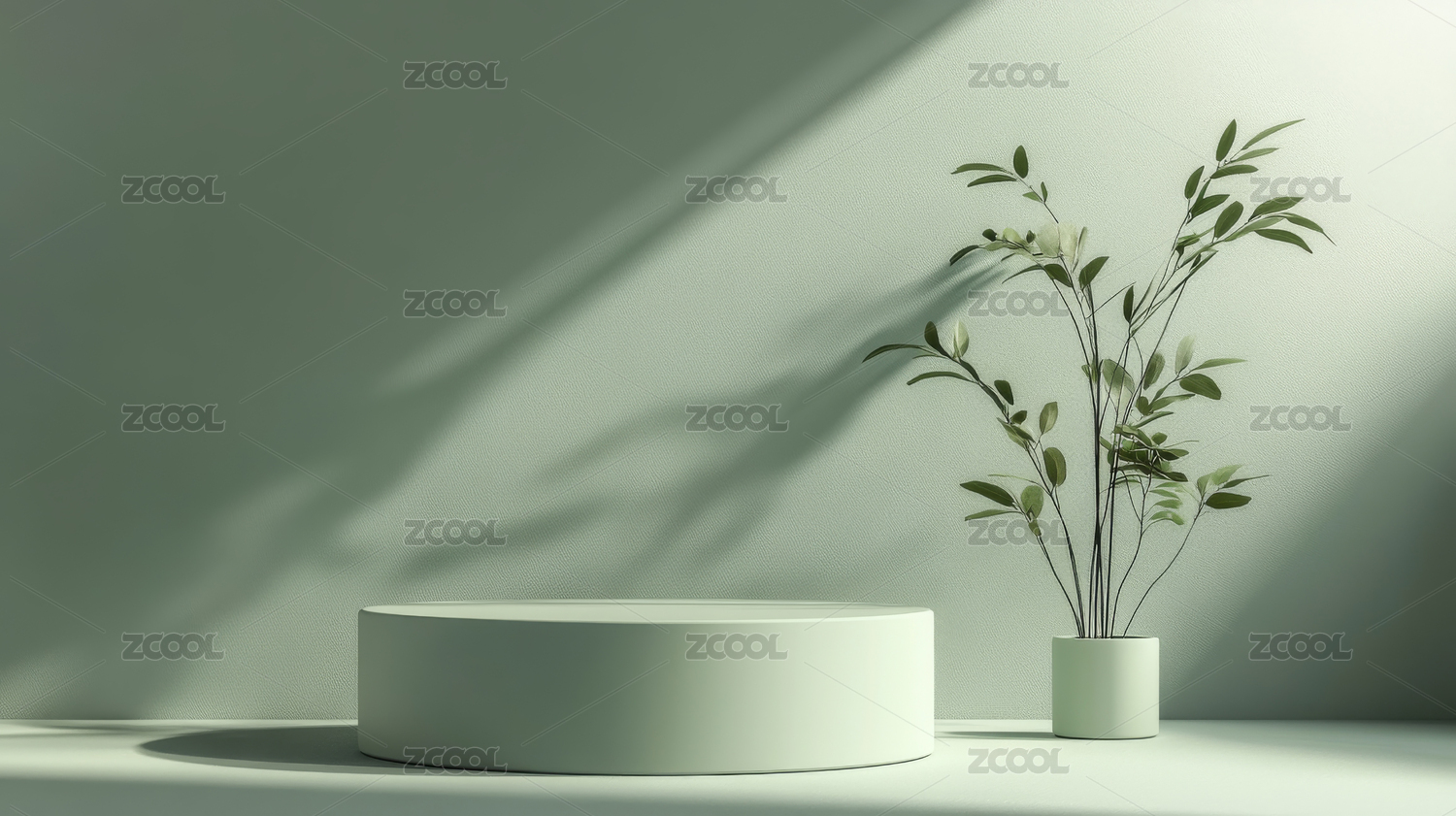 空白色圆形展示台与植物