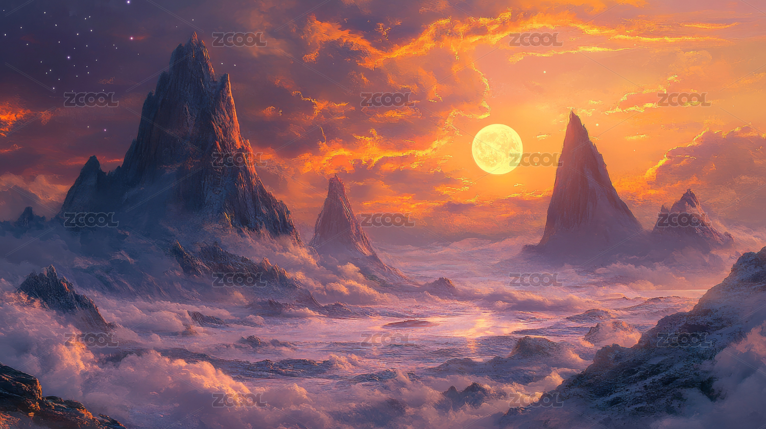 AI数字艺术,自然,户外,背景,天空,风景,自然美,地形,云,高山