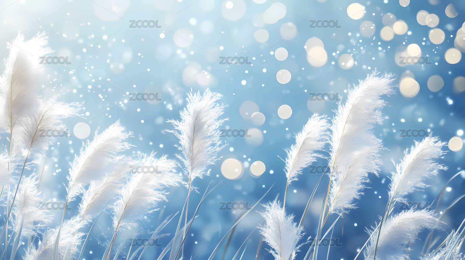 冬季芦苇雪景与梦幻光晕