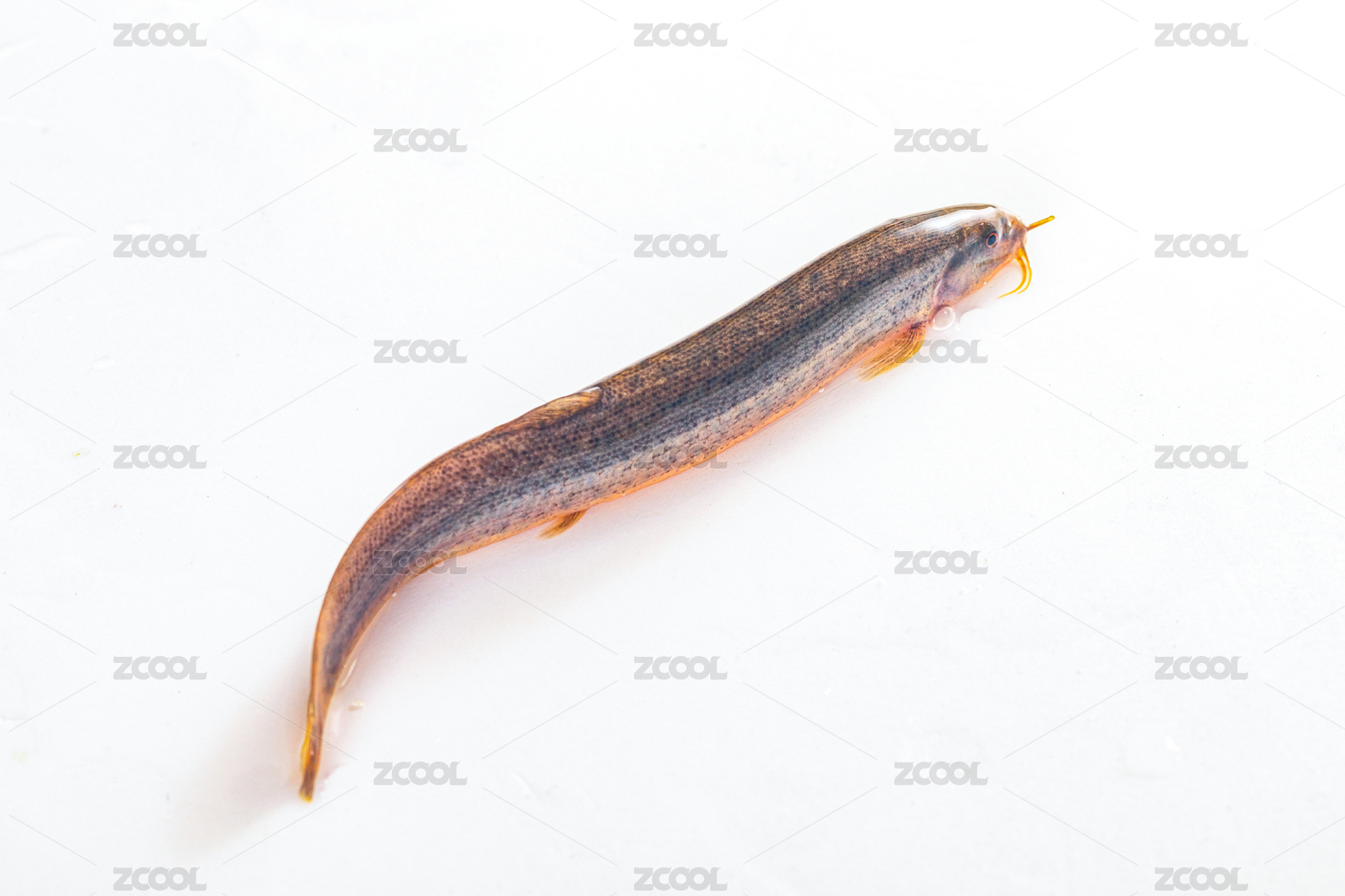 白色背景上的一只新鲜泥鳅鱼头部特写