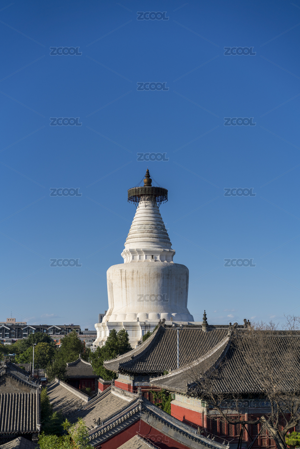 北京妙应白塔寺庙红墙古建筑历史文化胡同街