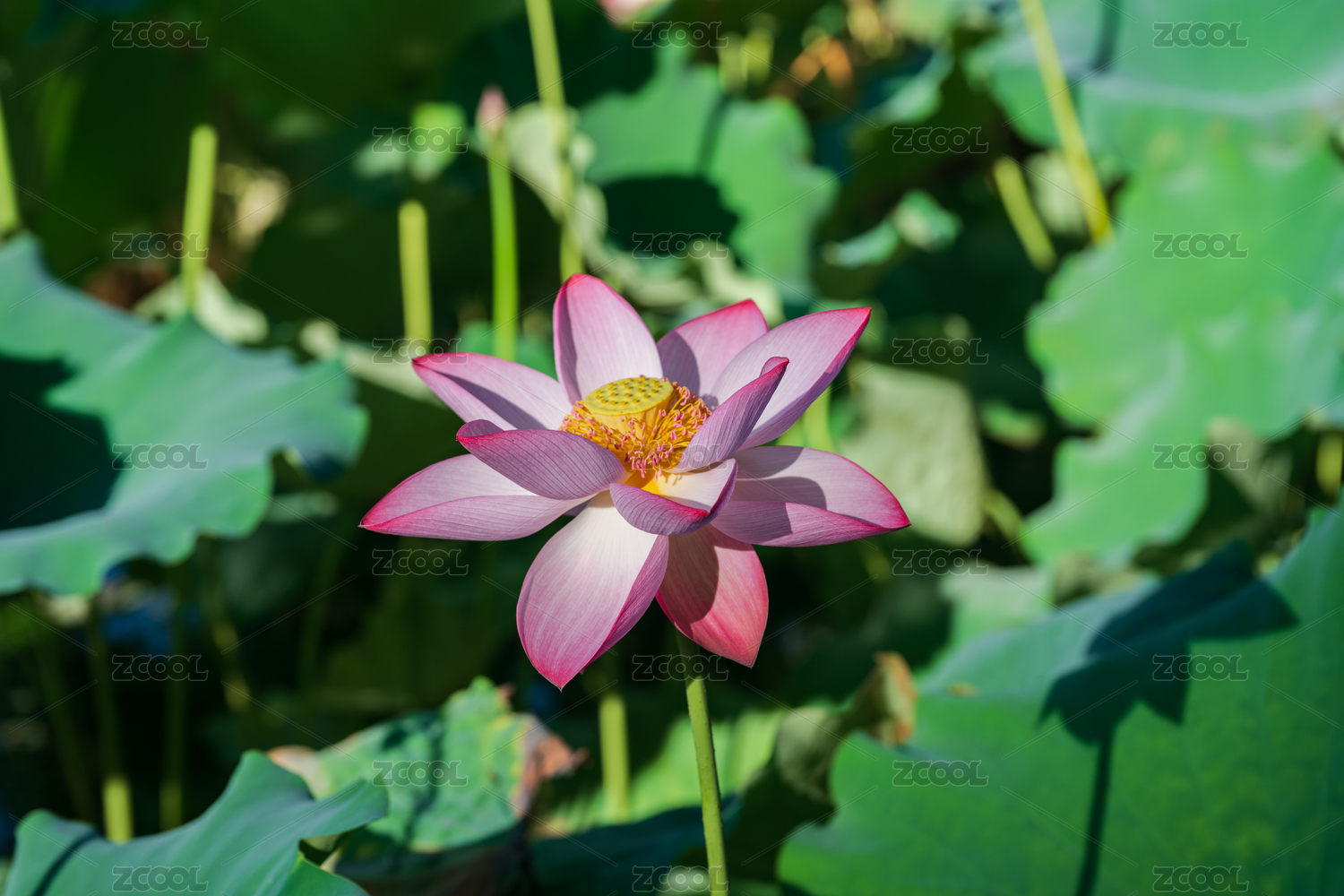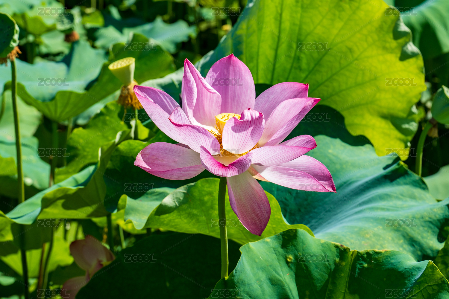夏季荷塘里盛开的粉色荷花