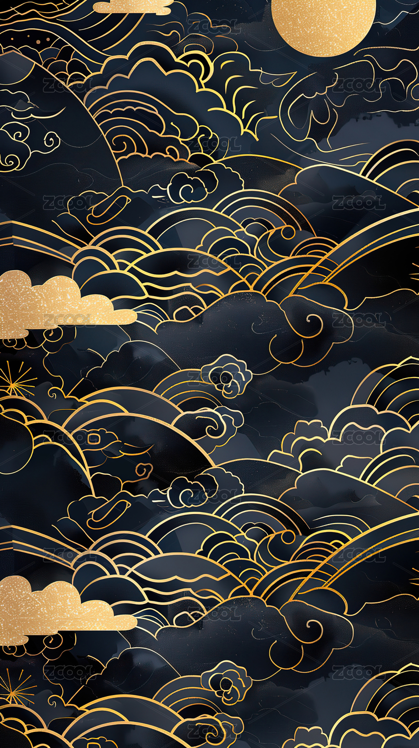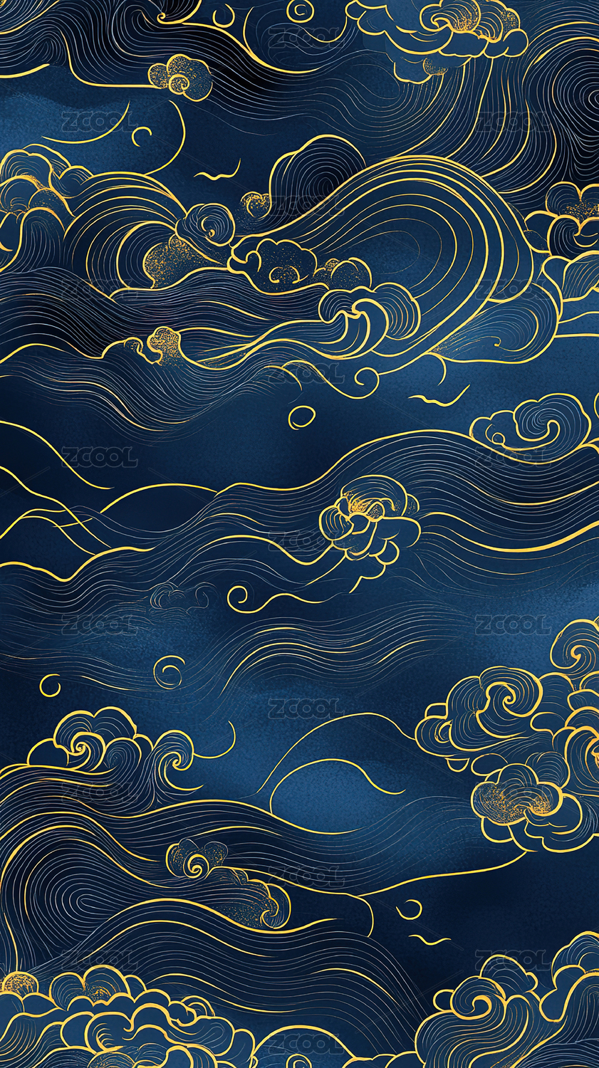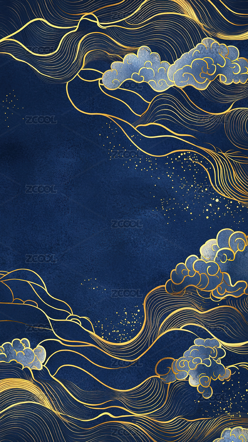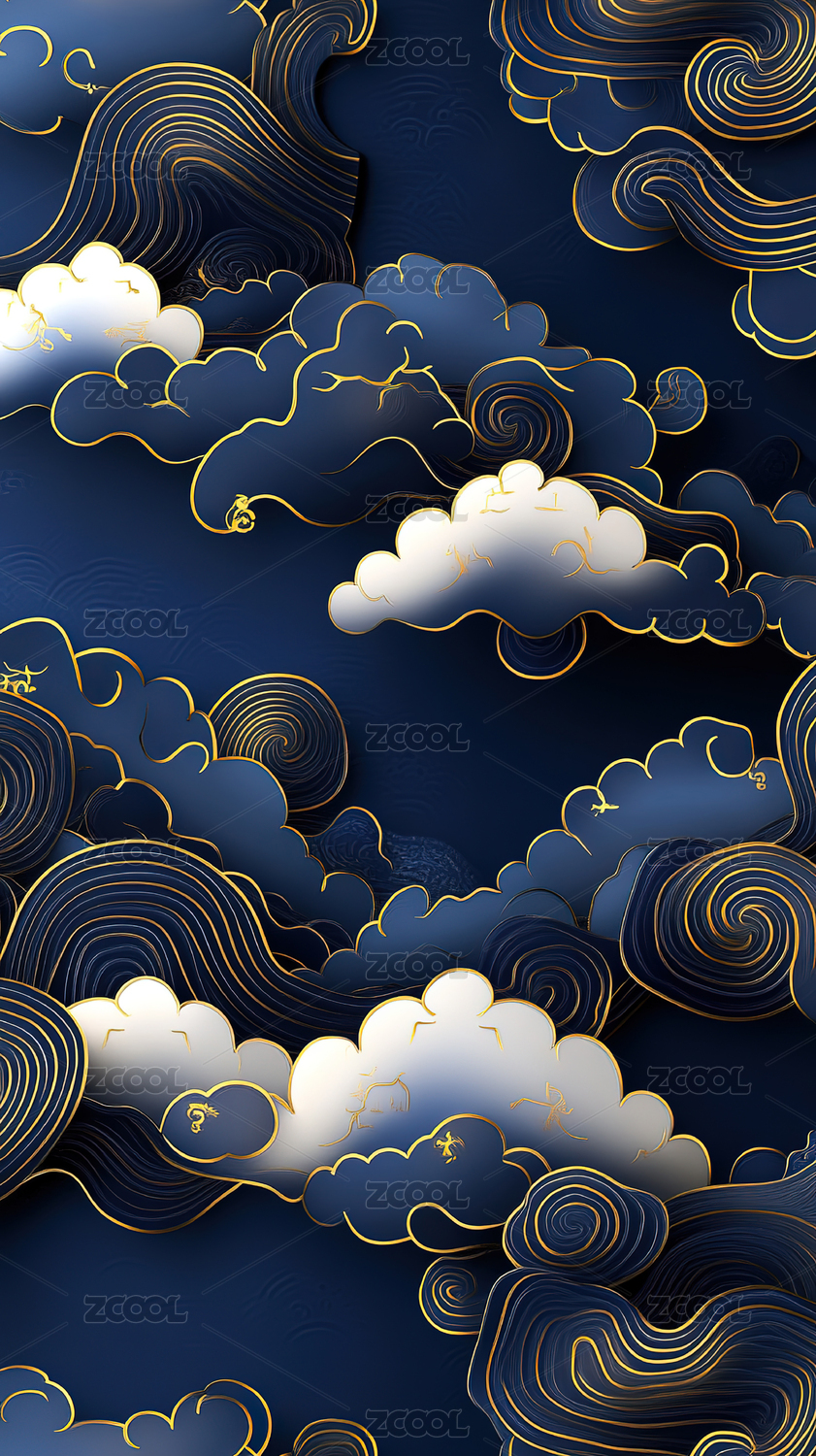 金色祥云在深蓝背景中飘动